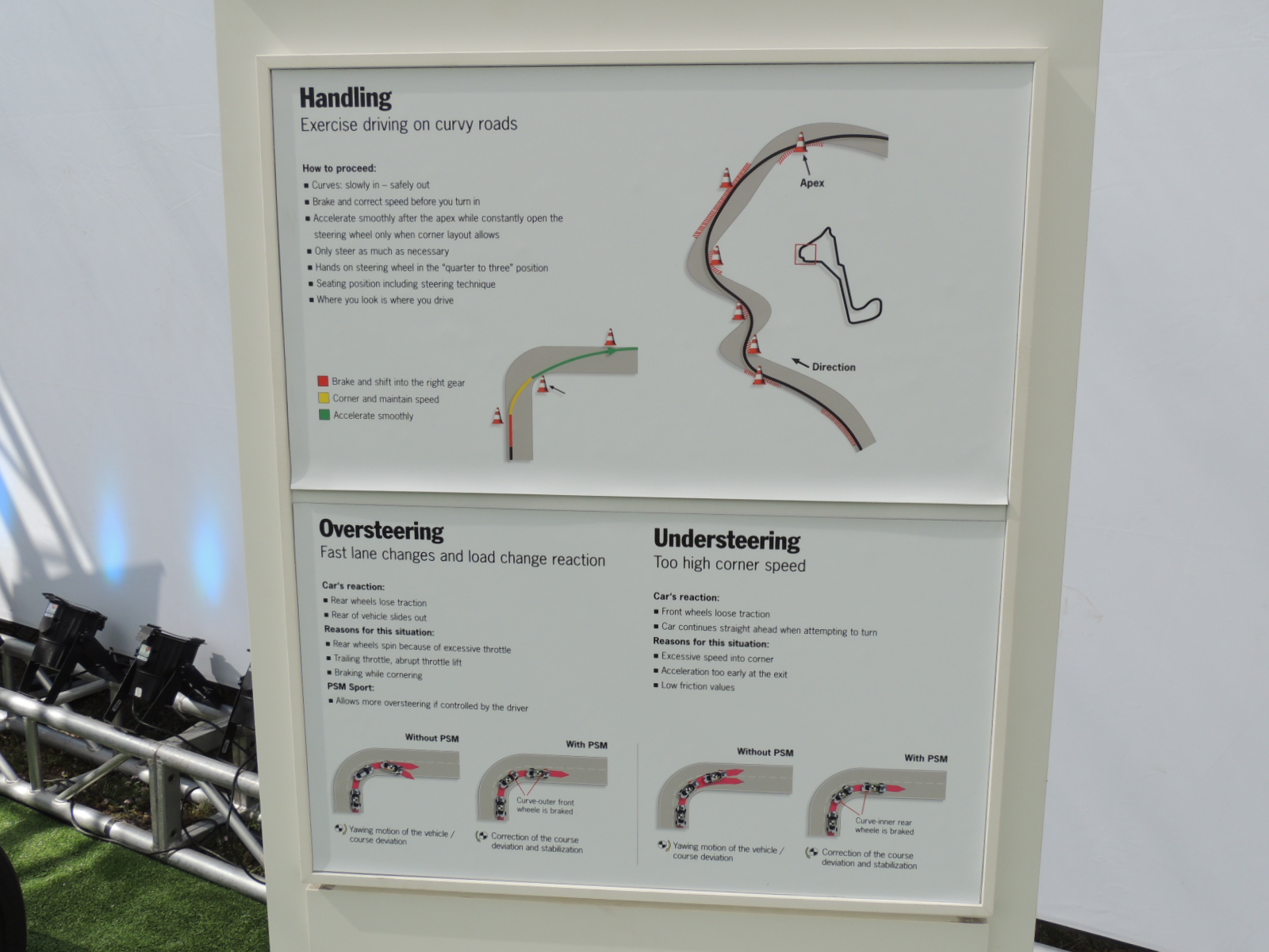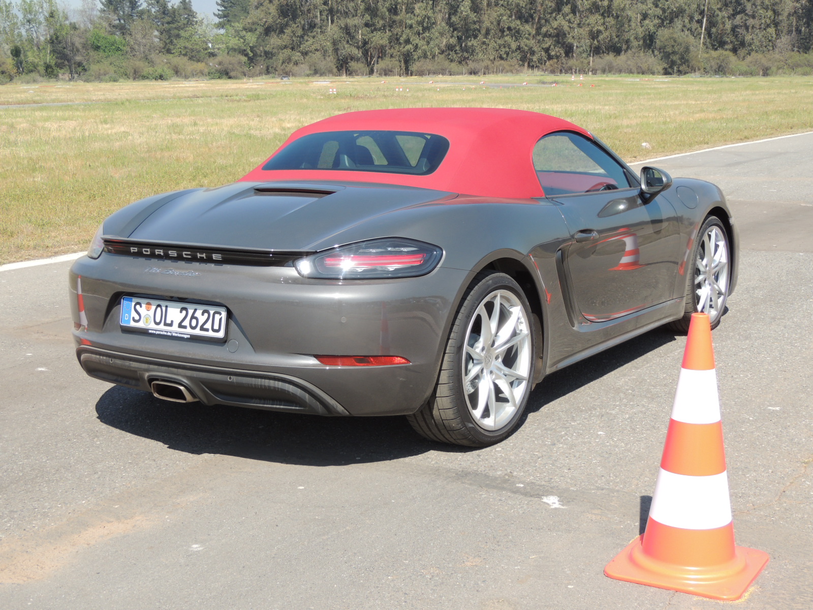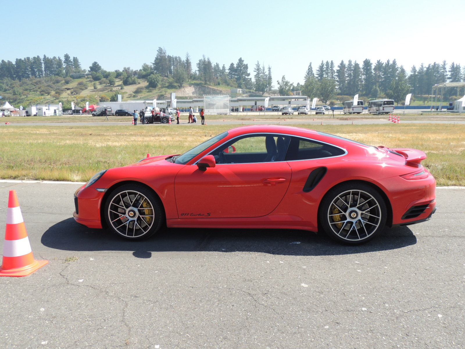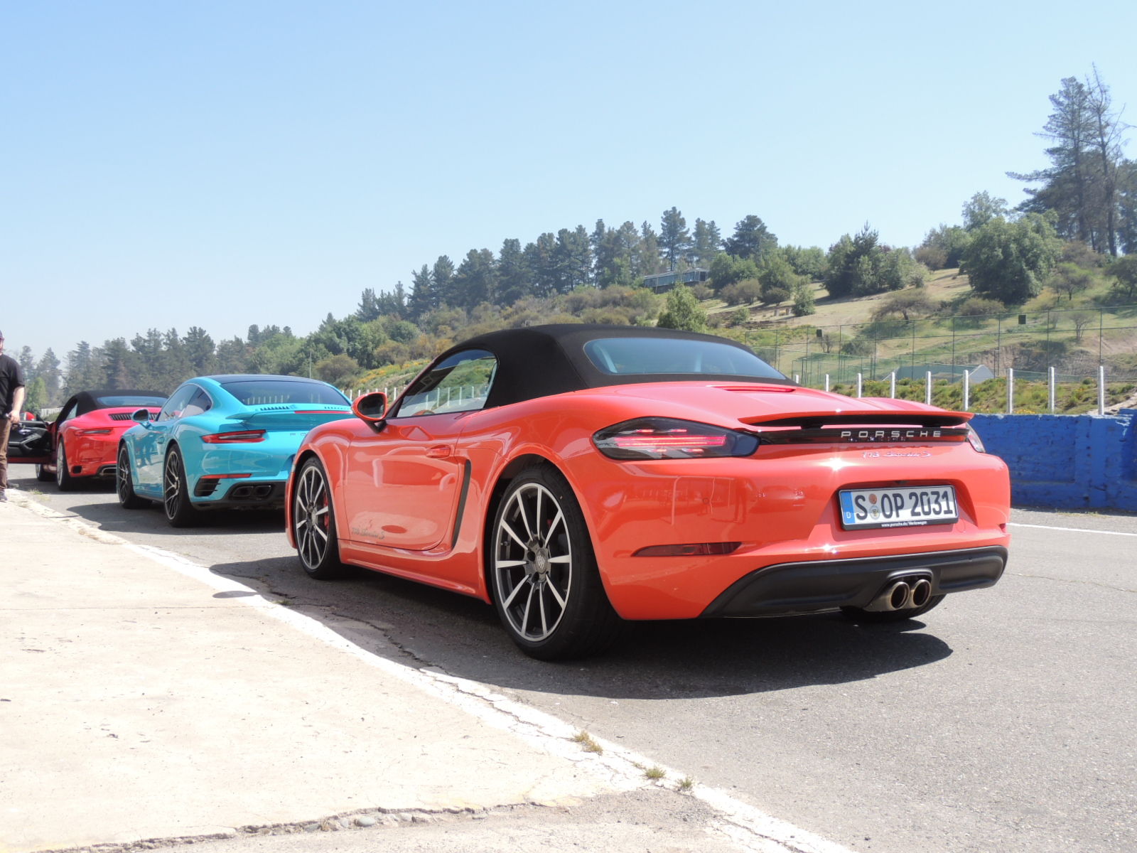 - Slalom y frenaje: Luego de las instrucciones debidas, los asistentes se ponían al volante, acompañados en todo momento por el instructor, de un 718 Boxster para realizar una prueba de slalom a contrarreloj. Luego venía el frenaje abordo de un llamativo y potente 911 Turbo S rojo, ejemplar que se probaba con el sistema activado y desactivado del «Launch Control», que opera teniendo el freno pisado, el acelerador a fondo y soltarlo, saliendo virtualmente «disparado», para luego comprobar la capacidad de su eficiente sistema de frenado, clavando el pie sobre el pedal del freno.