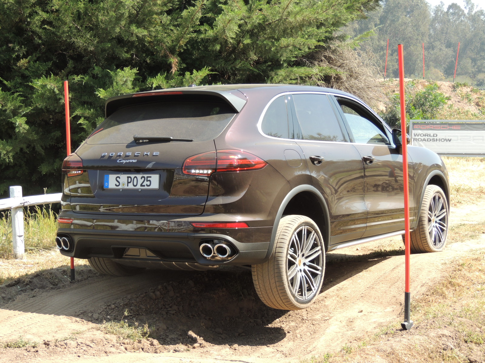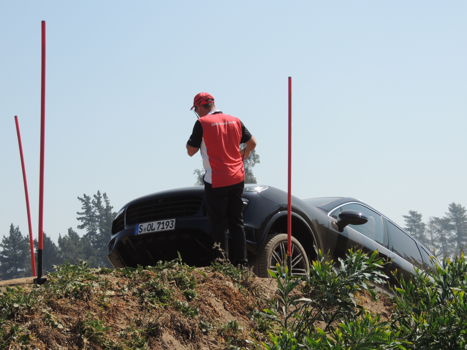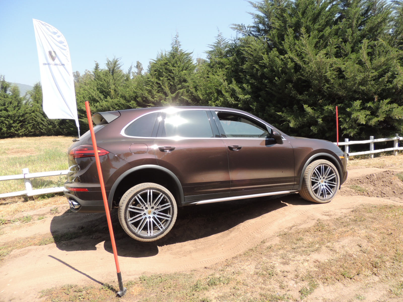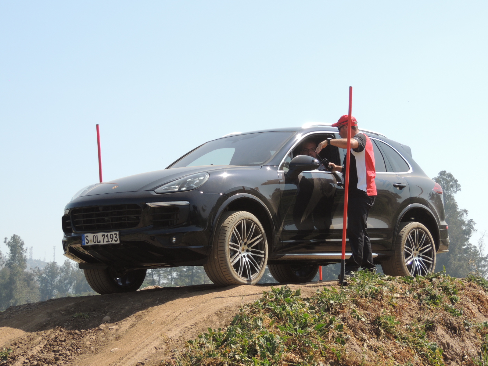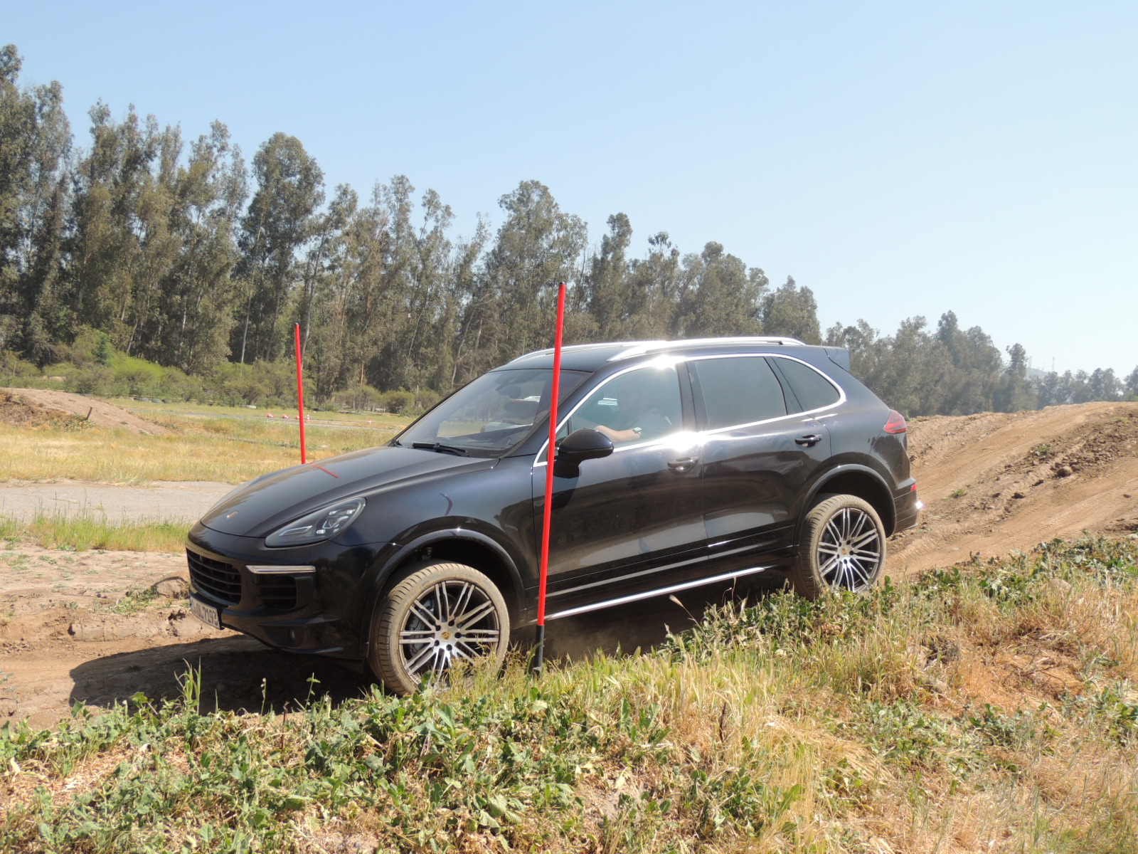 - Off Road: Luego de la respectiva charla tendiente a darnos un barniz acerca de cómo debíamos enfrentarnos a condiciones de terreno complejas, abordamos uno de los Cayenne dispuestos, poniendo el sistema de gestión de tracción (Porsche Traction Management System) en la postura de mayor despeje. La primera prueba sólo había que mantener el volante recto en todo momento, procurando tocar levemente el acelerador, dejando a la inteligencia del sistema el trabajo pesado, luego se pasaba por una curva inclinada, para luego enfrentar una pronunciada pendiente, donde al descender poníamos en funcionamiento el sistema de control de descenso sin tener que tocar el acelerador ni freno.