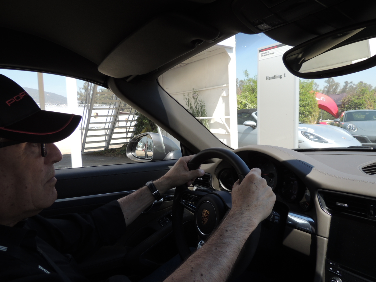 - Handling 1: Luego de una breve «capacitación» que tuvo lugar en una amplia zona de «hospitality», con asientos y sofás para descansar y poder refrescarnos con algún bebestible, nos dirijimos hasta la zona de «pits», donde se encontraba dispuesta una flota de 911, saliendo ordenadamente y en caravana, sin adelantar en ningún momento, recordando lo señalado por nuestro instructor acerca de la forma de tomar las curvas, frenando antes de entrar y abrirse al salir. De todas formas, por radio recordaba a los participantes o invitaba a algún rezagado a ponerle más «gas» al auto. Era una vuelta de reconocimiento y otra en donde se comprobaba el real rendimiento de los motores, sobre todo en la recta de aceleración.