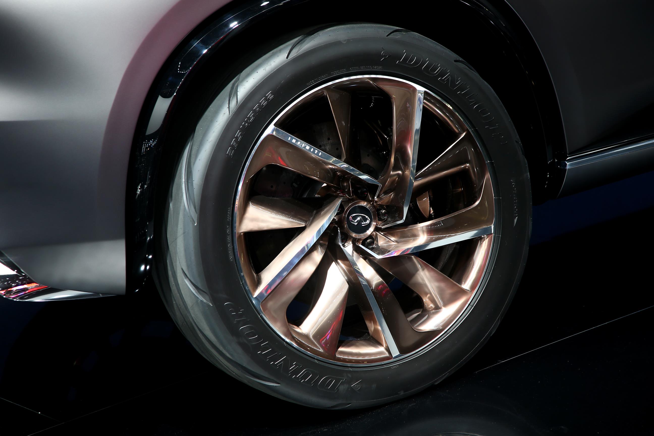 La visión progresista de INFINITI es evidente en QX Sport Inspiration con su exterior elegante pero de poderosas proporciones, con actualizaciones en cuanto a diseño realizadas para el Auto Show de París. El color exterior cambió a gris mate, mientras que los rines se hacen más grandes, ahora de 22 pulgadas en un color bronce sorprendente que combina con los calipers del mismo tono.