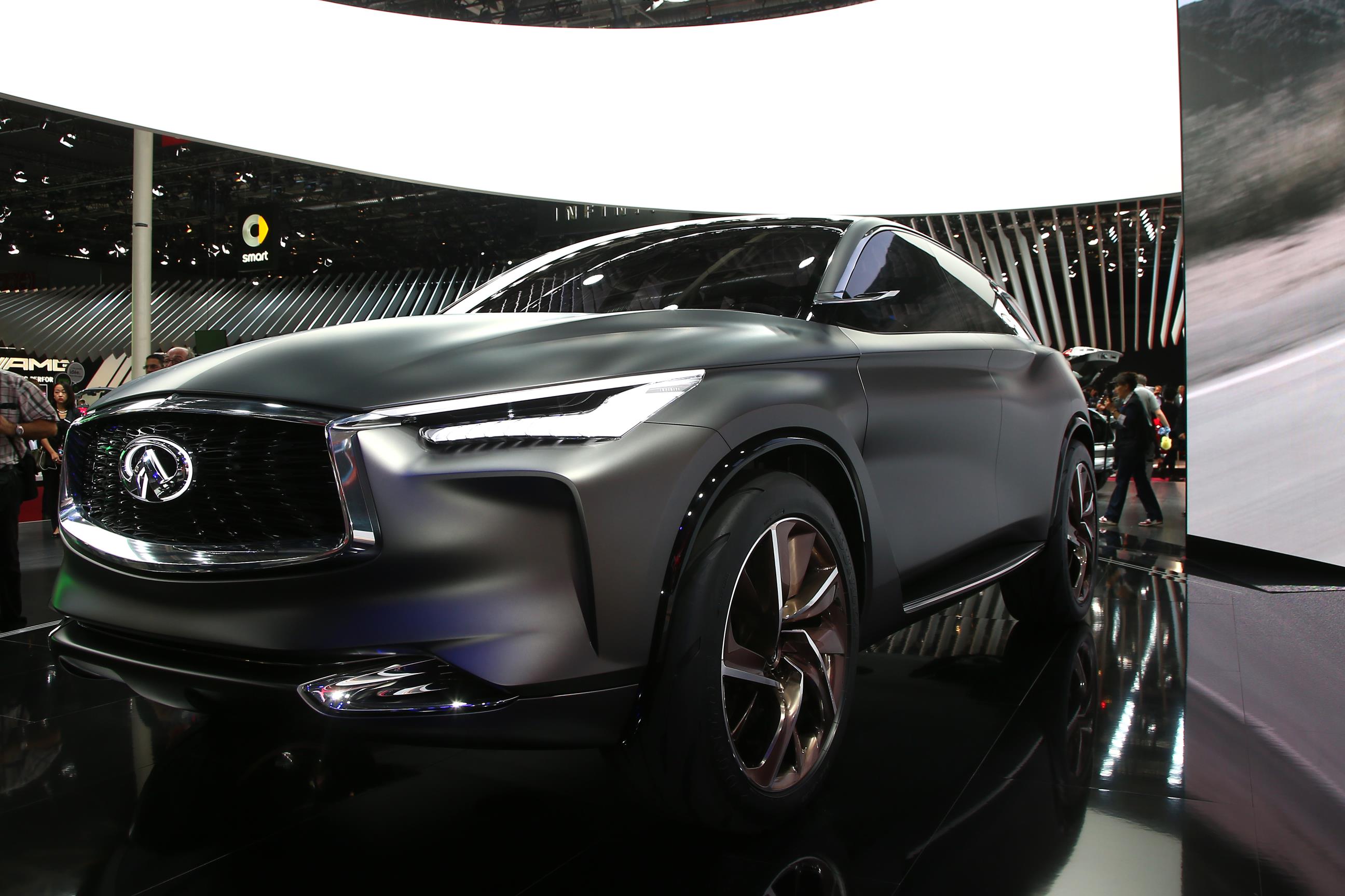 Haciendo su debut en Europa, llega el concepto QX Sport Inspiration, estableciendo los parámetros de diseño de futuros modelos QX. El nuevo y audaz concepto ha recibido algunas mejoras de diseño desde su revelación mundial en el Auto Show de Beijing en abril de 2016, y explora la visión de la marca para una próxima generación de SUV Premium medianos.