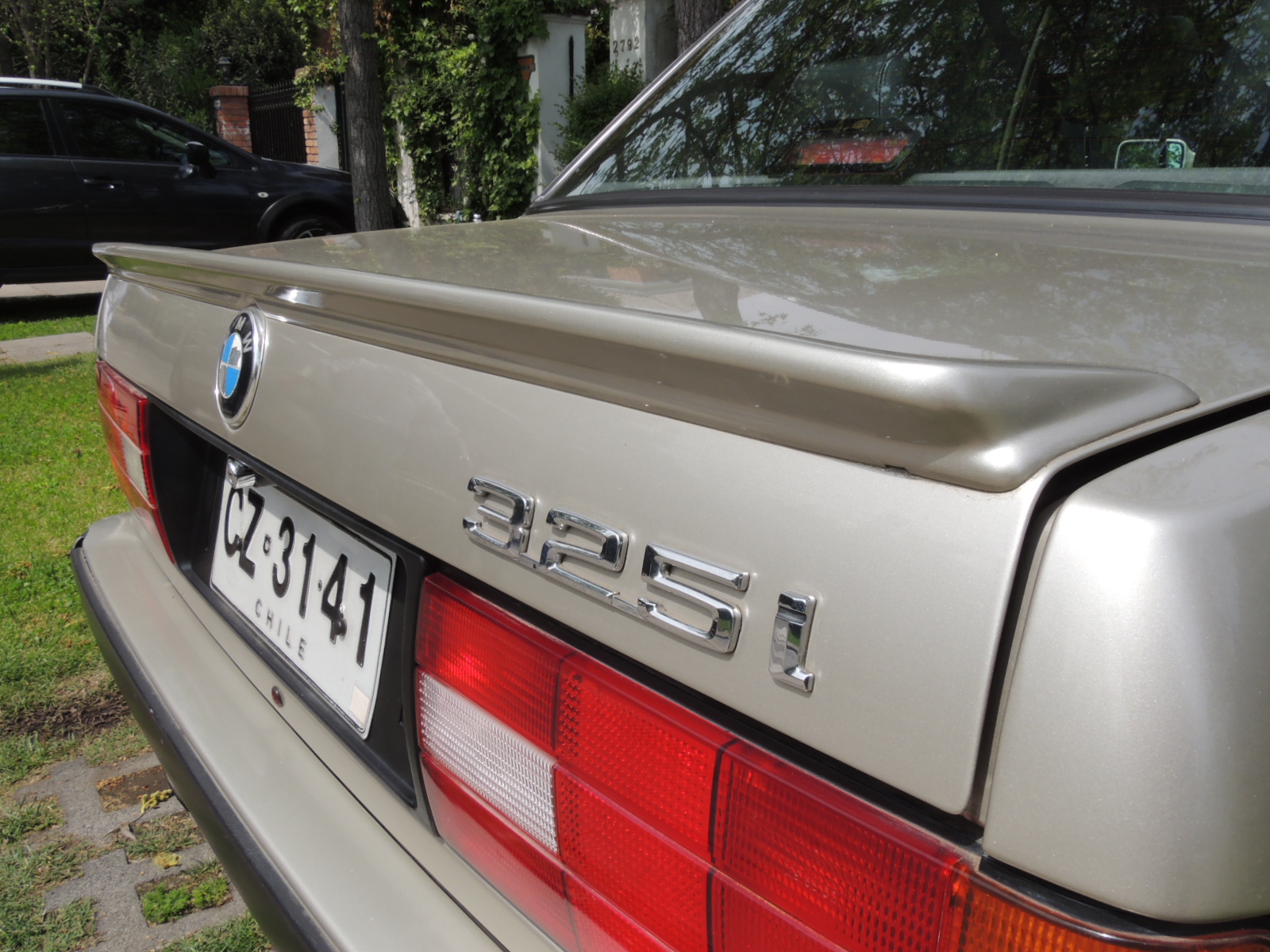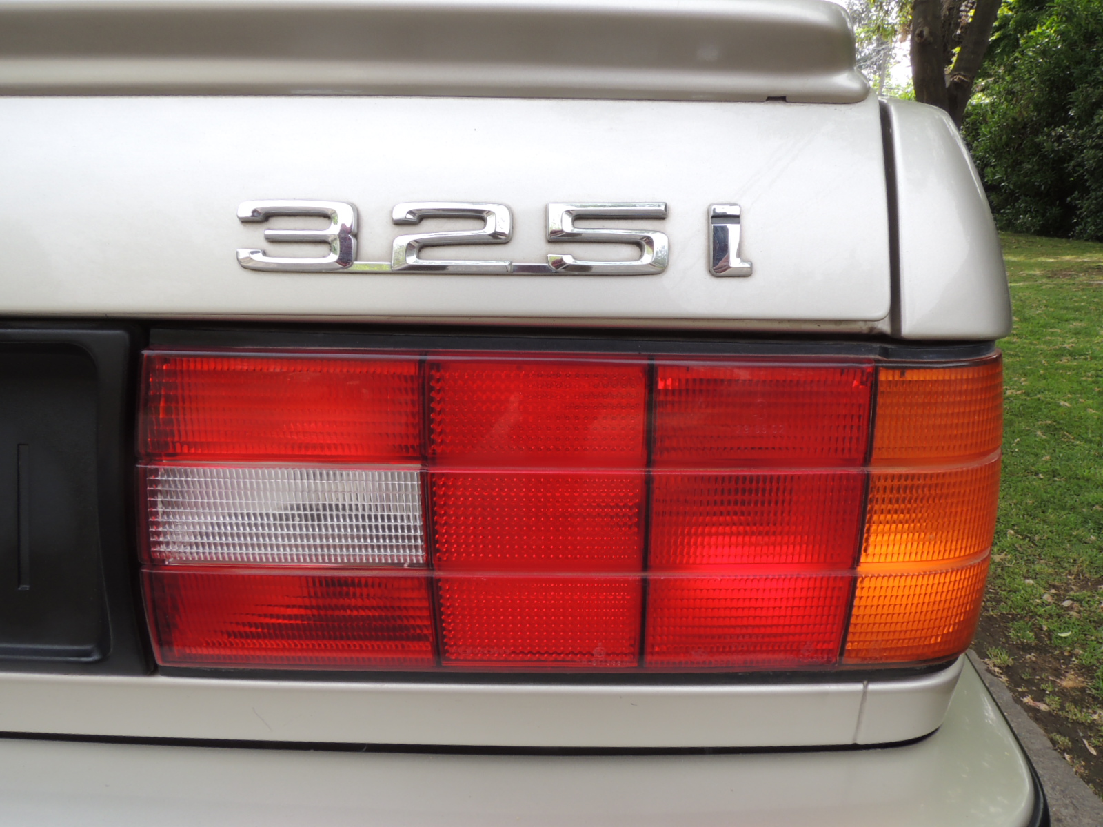 Su zaga mantiene la forma de cuña, con un alerón sobre el borde de la tapa del maletero, del tono del color del auto, la grafía cromada en relieve (325i) al costado derecho, sumado a sus llamativos ópticos rediseñados y salida de escape doble del lado izquierdo.
