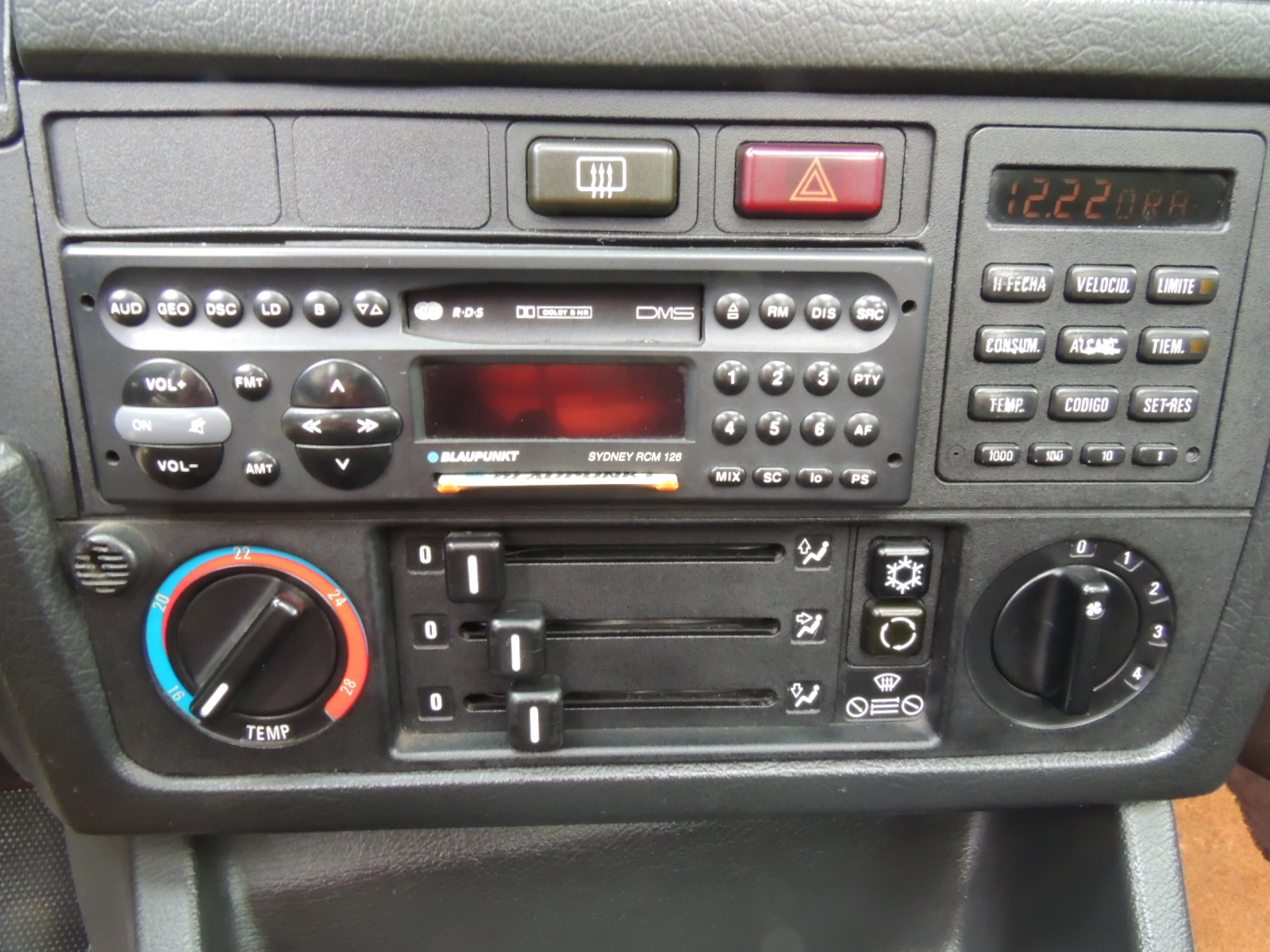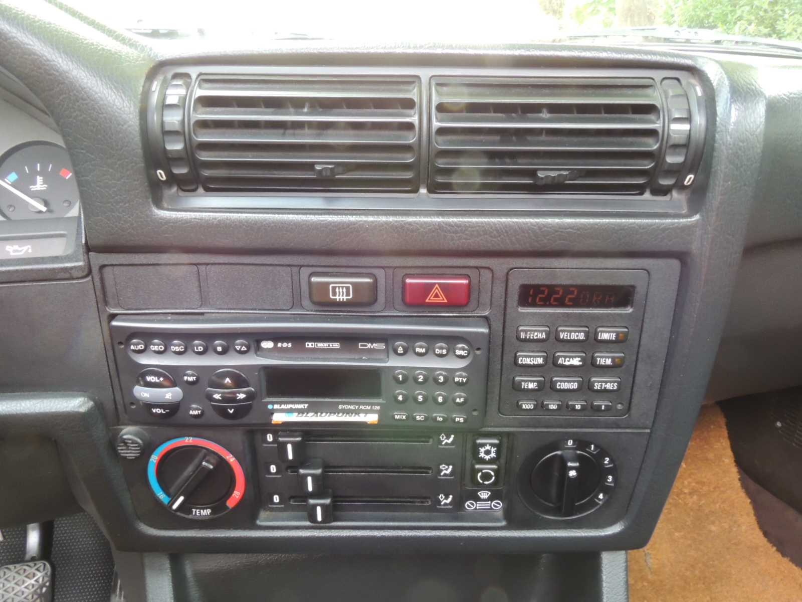 La consola central, ligeramente orientada hacia el conductor, alberga dos rejillas de aireación con regulación lateral (de un total de cuatro), los interruptores del desempañador trasero, hazard de emergencia, un prodigioso sistema de audio digital Blaunkput Sydney RCM 126 con cargador de CD en el maletero. La antena es de accionamiento eléctrico.