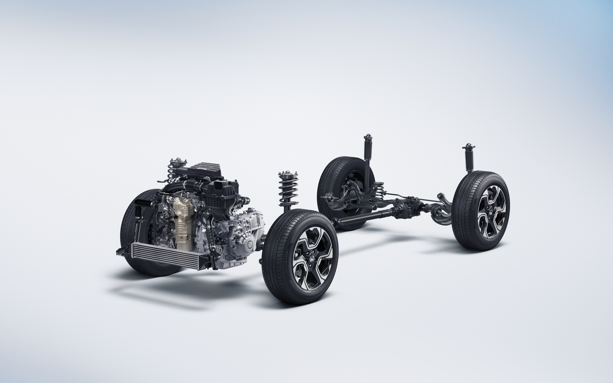 El chasis también lo comparte con el Civic, mientras que su despeje del piso aumentó en 2.5 cms. La suspensión delantera tipo MacPherson y multi-link en la parte trasera utiliza amortiguadores especiales para una fricción más baja tanto para los modelos con tracción delantera o tracción total.