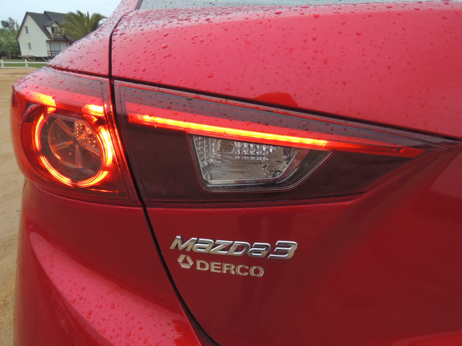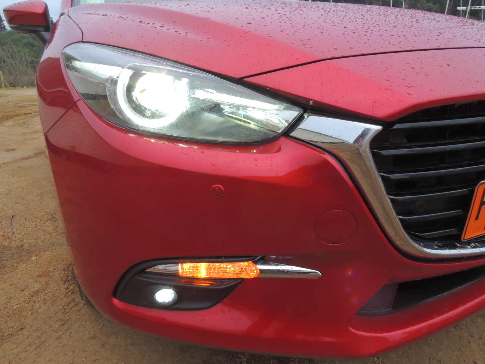 Ahondando en sus intimidades, encontramos que los principales cambios, en el sedán y hatchback (Sport), se concentran en su frontal, con una máscara más grande, de renovado diseño al igual que el logo que adopta una nueva forma. Es flanqueada por dos ópticos ligeramente rediseñados que se asemejan a los del Mazda6 con presencia de LED. Otro cambio es la reformulación del diseño de los neblineros e intermitentes, donde los primeros lucen más pequeños, además de adelgazarse el intermitente situado sobre ellos. Nueva es la presencia de LED diurnos horizontales.