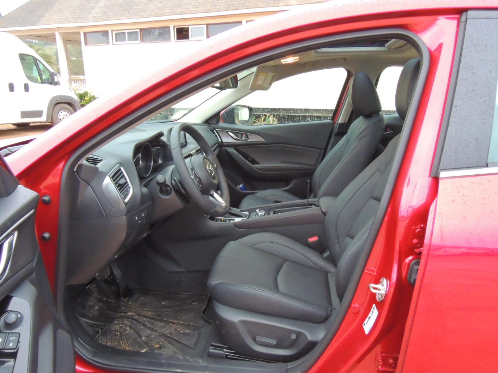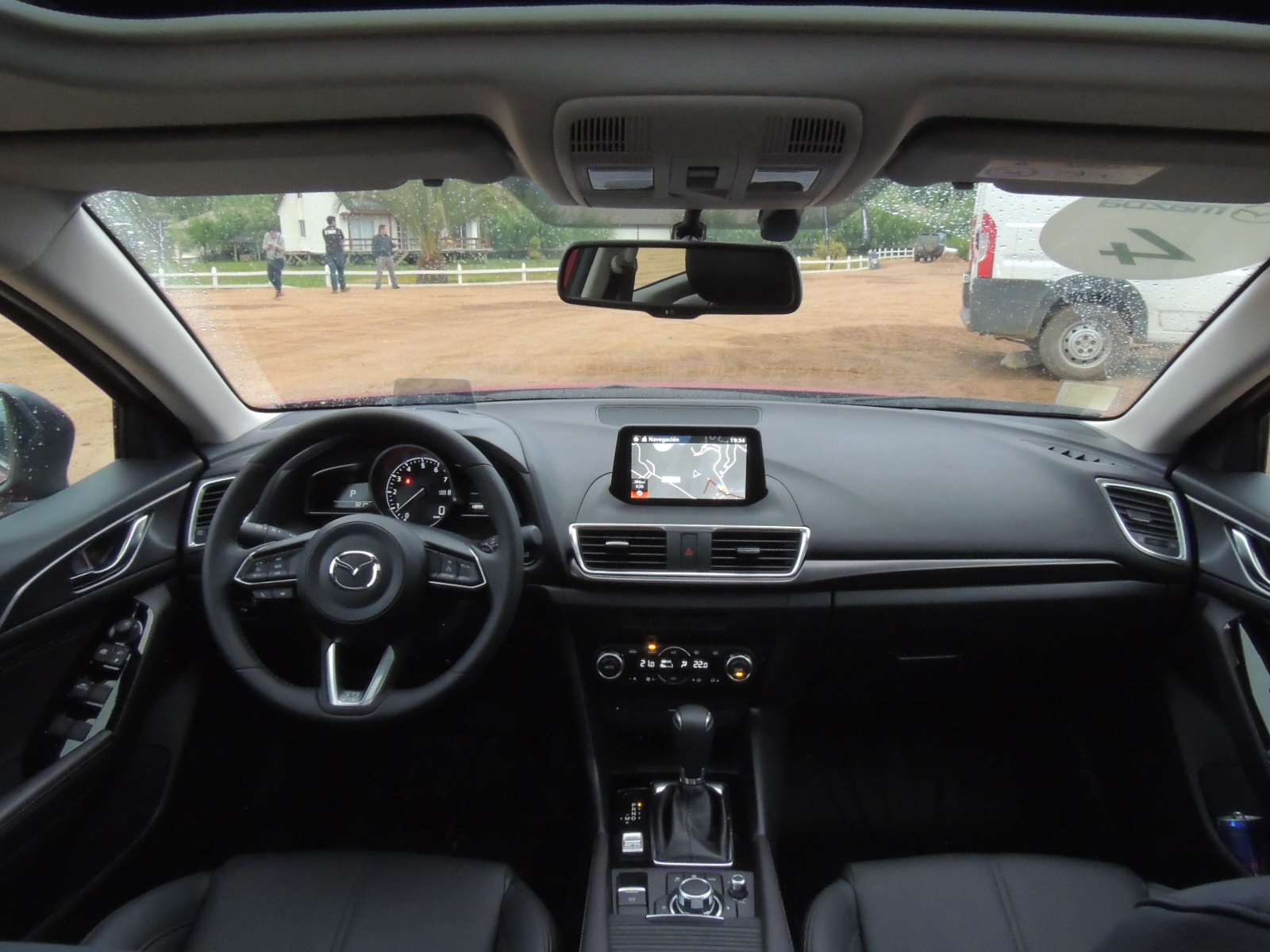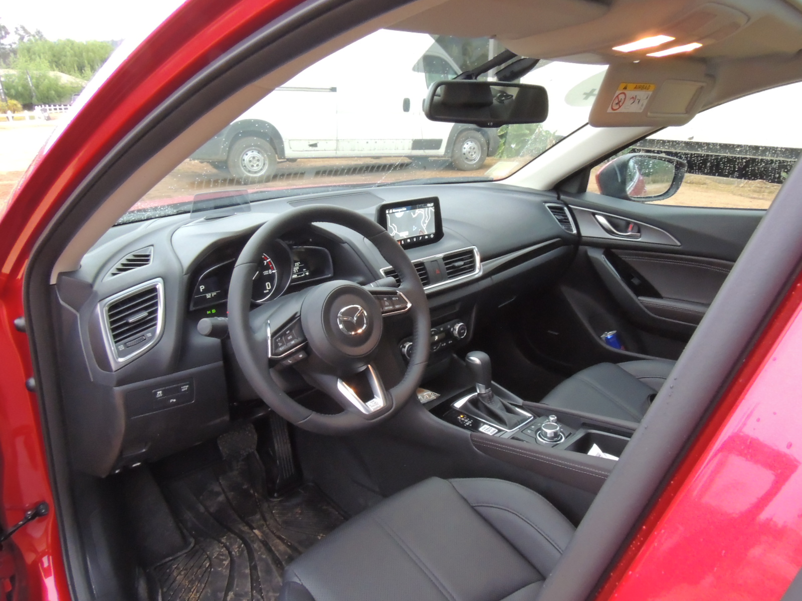 En cuanto a su habitáculo, encontramos muchos elementos del Mazda6 como son una consola central con apoyabrazos de nuevo diseño, pespuntes dobles en los asientos de cuero, nuevas manillas en las puertas, nuevo panel de control de alzavidrios, cierre y espejos del lado del conductor, mejoras en la calidad del cuadro de instrumentos, una pantalla táctil más integrada. Nuevo es también el volante. Se trata de cambios que entregan una mayor sofisticación y una mejor imagen desde el punto de vista de sus terminaciones y calidad percibida. En las versiones GT hay dos tipos de tapizados de cuero: blanco y negro. Este último con combinaciones cafés.