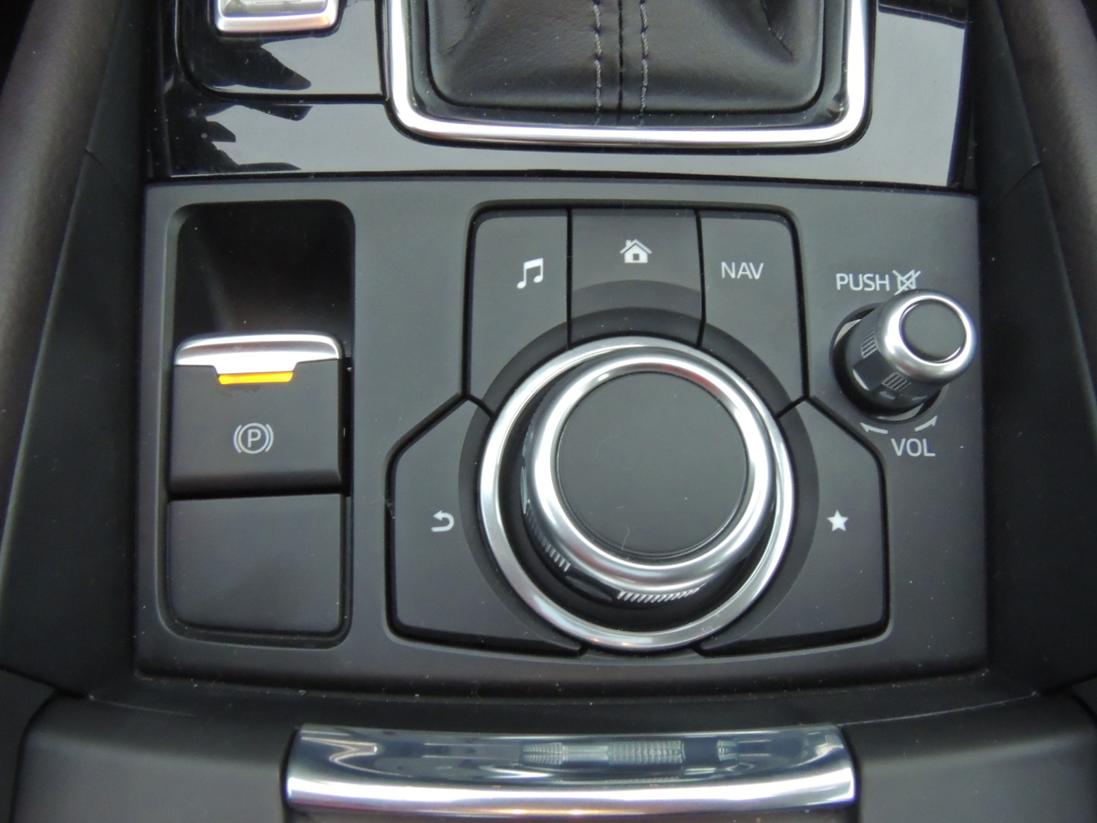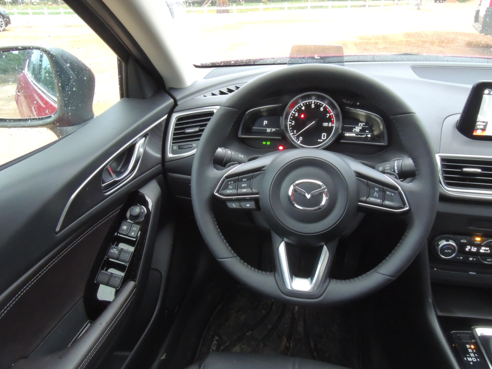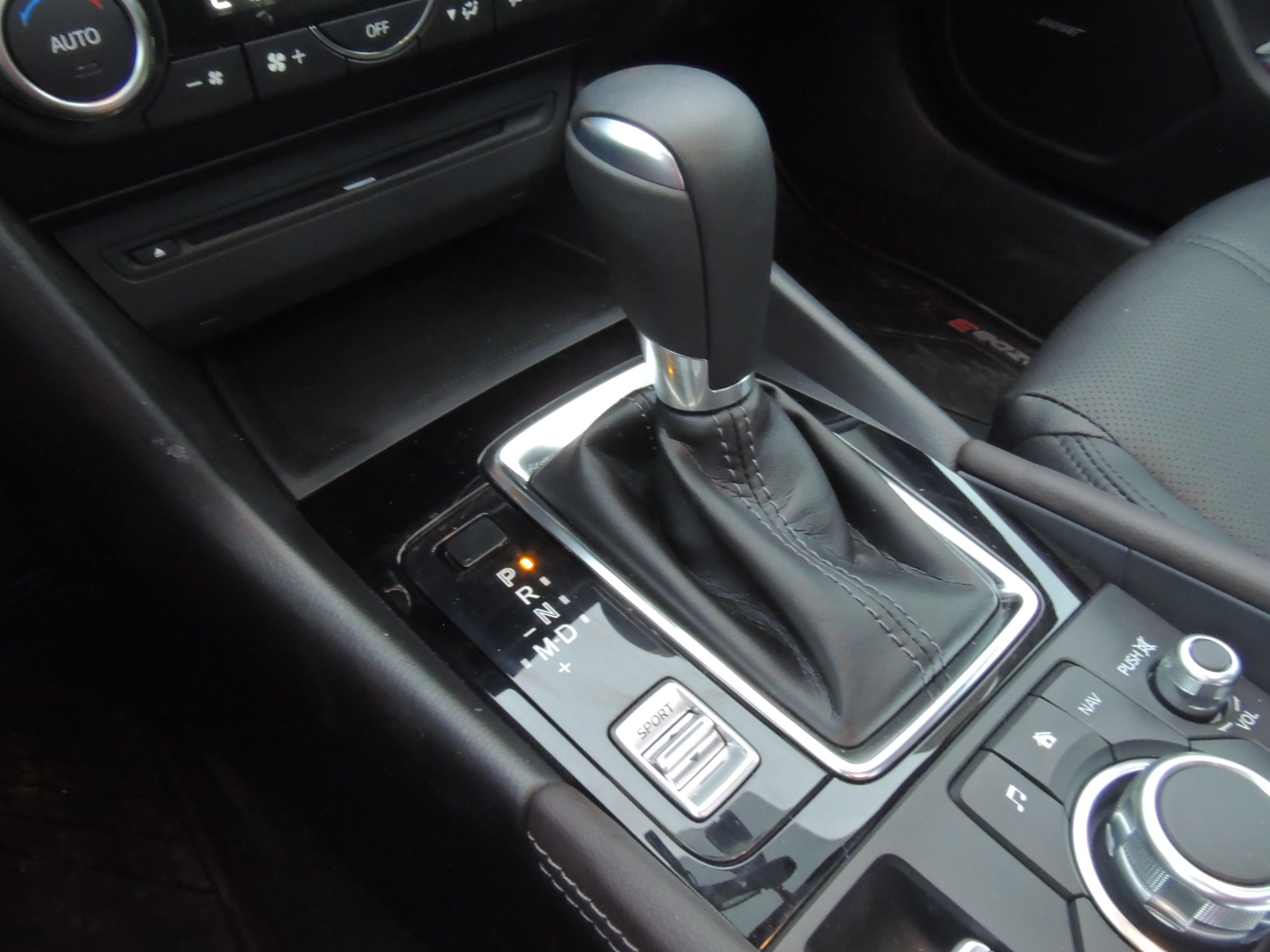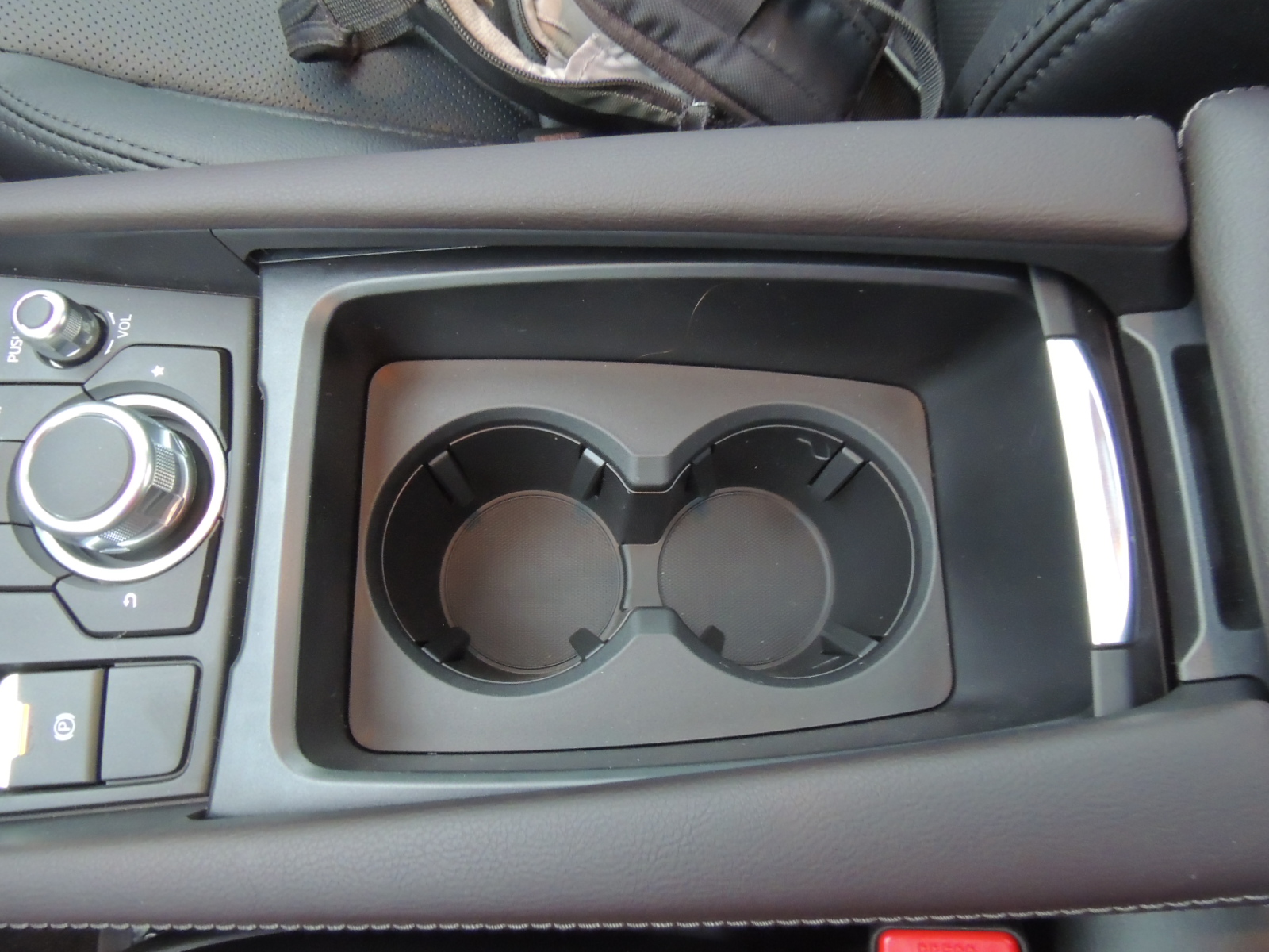 En cuanto a su habitáculo, encontramos muchos elementos del Mazda6 como son una consola central con apoyabrazos de nuevo diseño, pespuntes dobles en los asientos de cuero, nuevas manillas en las puertas, nuevo panel de control de alzavidrios, cierre y espejos del lado del conductor, mejoras en la calidad del cuadro de instrumentos, una pantalla táctil más integrada. Nuevo es también el volante. Se trata de cambios que entregan una mayor sofisticación y una mejor imagen desde el punto de vista de sus terminaciones y calidad percibida. En las versiones GT hay dos tipos de tapizados de cuero: blanco y negro. Este último con combinaciones cafés.