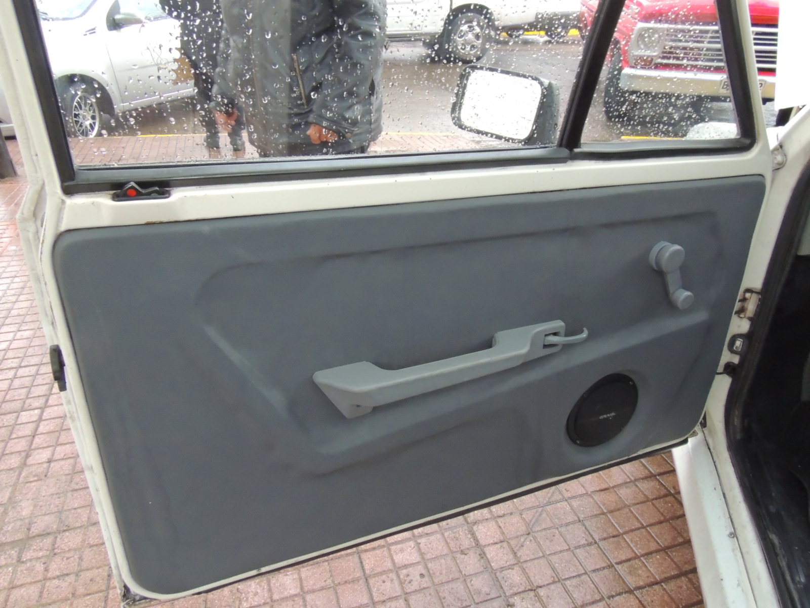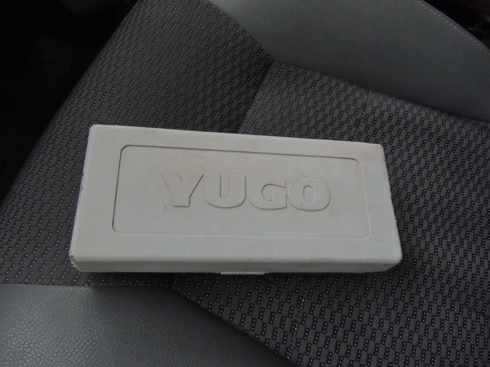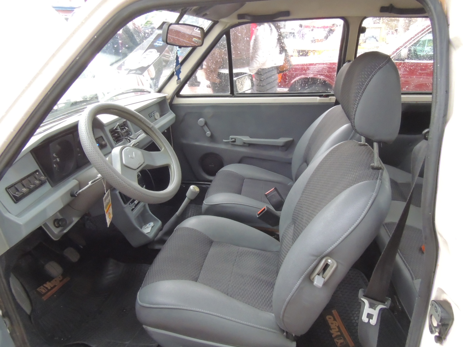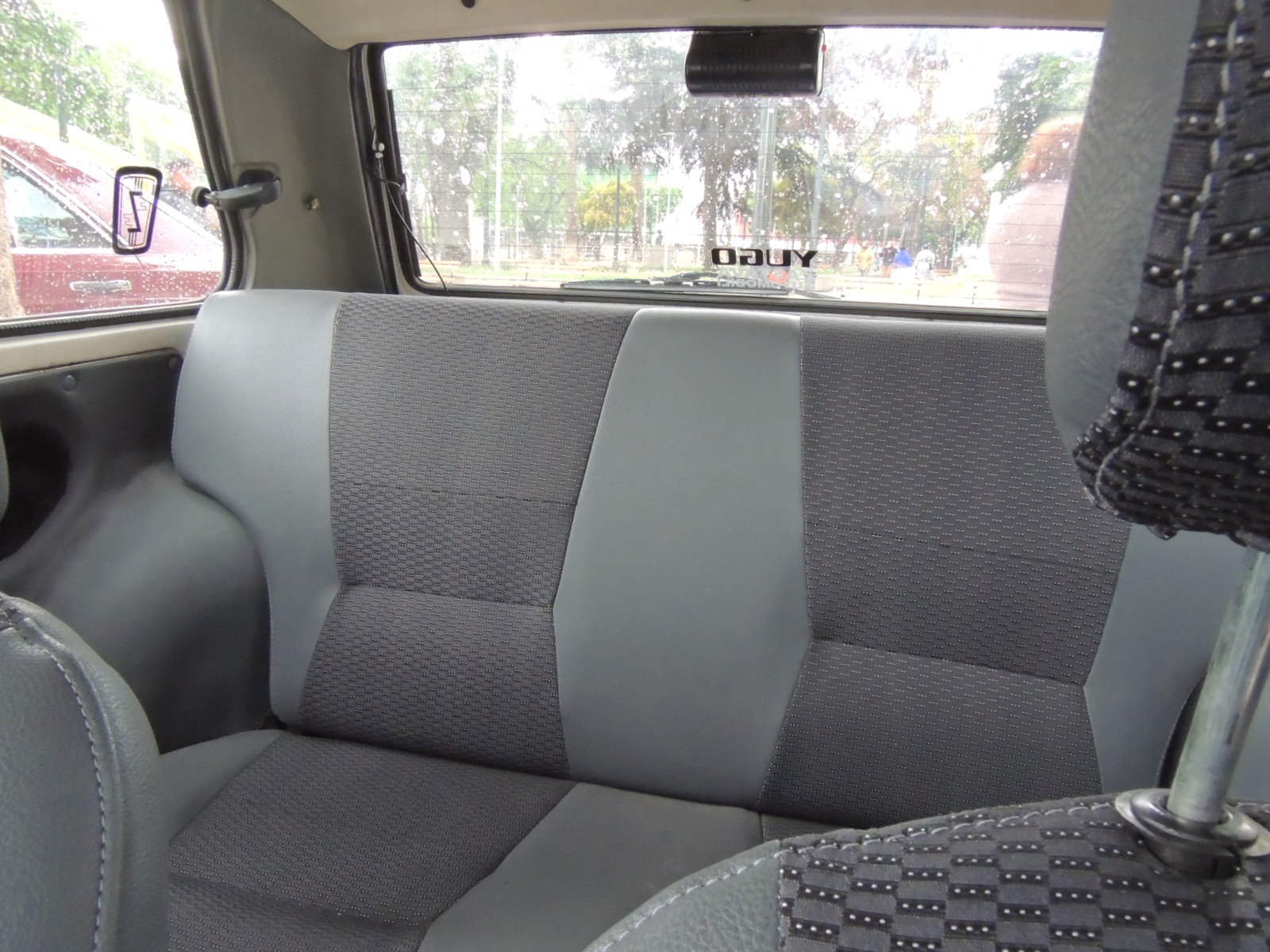 Más abajo encontramos otro adhesivo que alude al pequeño Yugo y un pequeño espacio para dejar objetos. La palanca de cambios iba directamente conectada al piso.