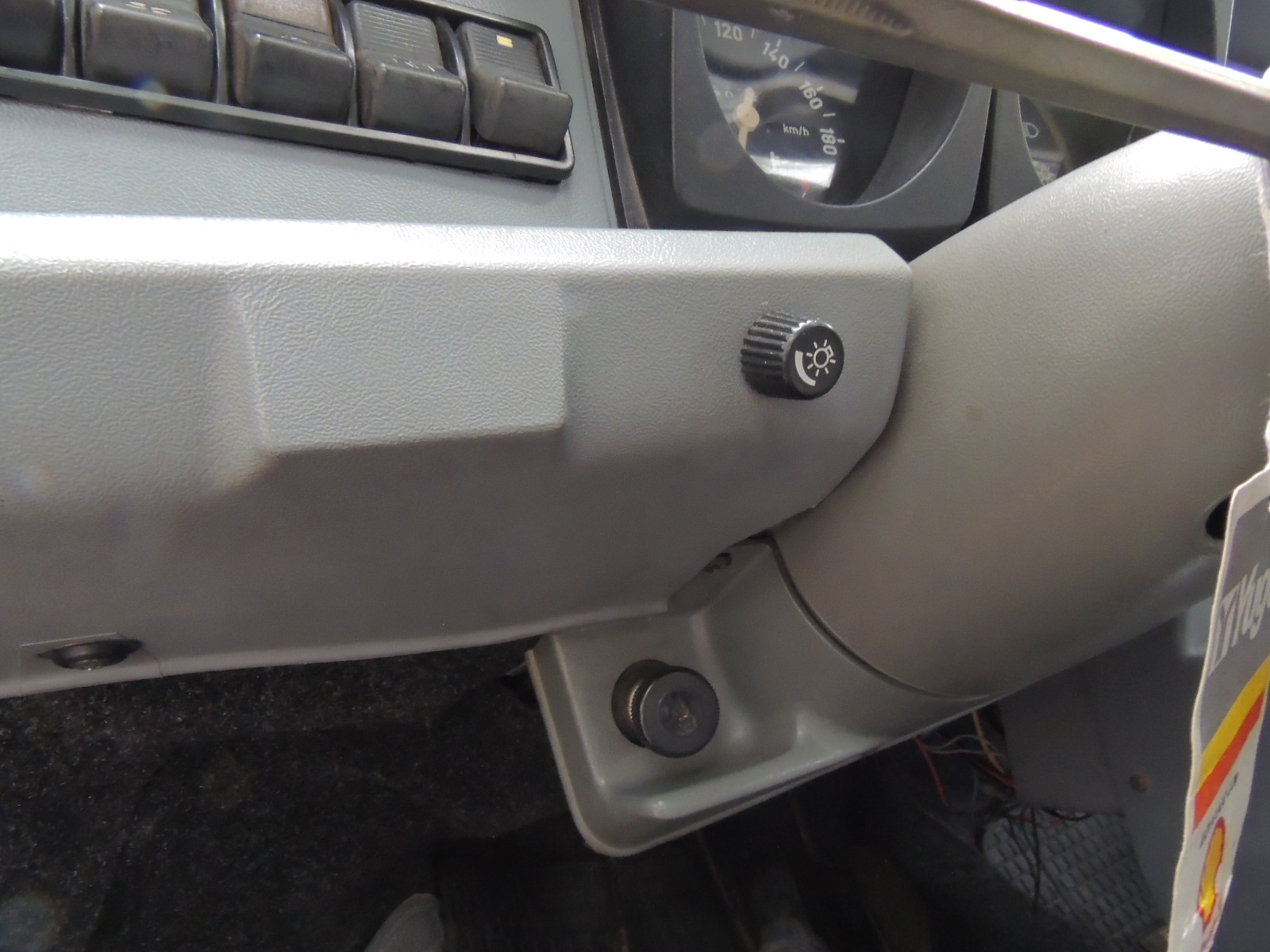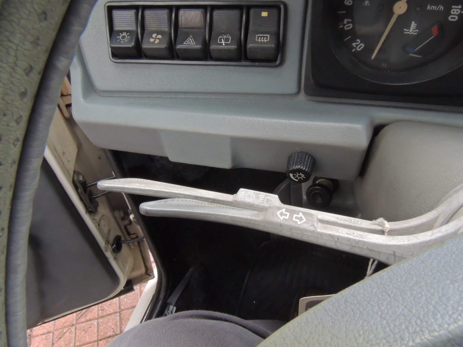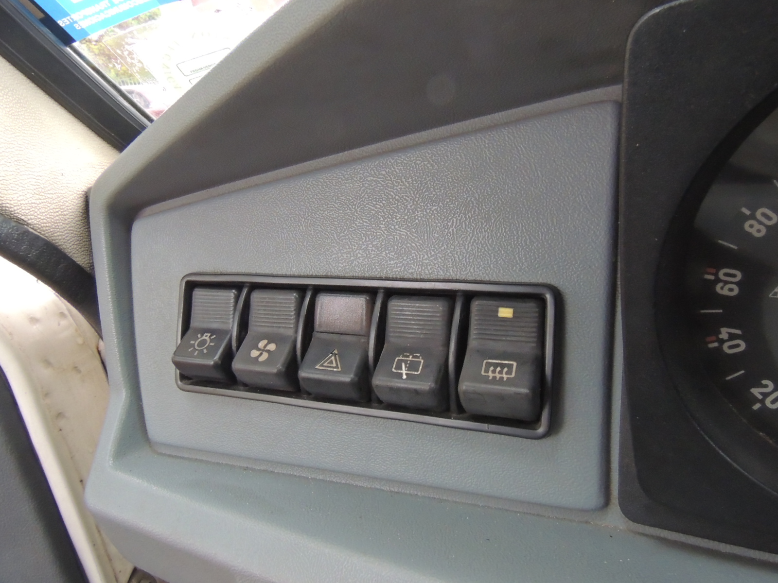 Al costado izquierdo encontramos cinco pulsadores que permiten: accionar luces, ventilador, hazard, lavador posterior y desempeñador, Éstos se complementaban con el que accionaba los neblineros delanteros, situado del lado derecho. No podemos dejar de mencionar que contaba con regulador de la intensidad de luz del tablero y del consabido chupete, para partidas en frío más ricas en mezcla.