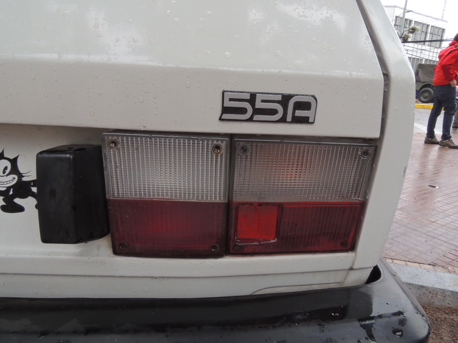 Por detrás la apariencia del 55A, no puede ser más sencilla. Destaca la presencia como equipo de serie de un limpiaparabrisas trasero. La superficie vidriada es amplia, además de contar con desempeñador eléctrico. Por las fotos oficiales, de una prueba realizada por Milautos, los logos no iban en el borde del portalón, sino que sobre el ángulo.