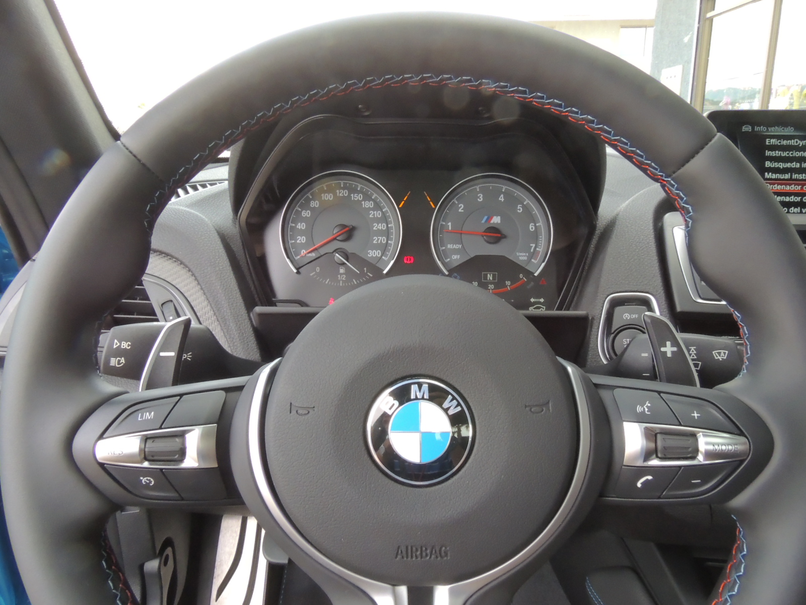 Volante deportivo M de piel multifuncional con levas de cambio y costuras de contraste M.