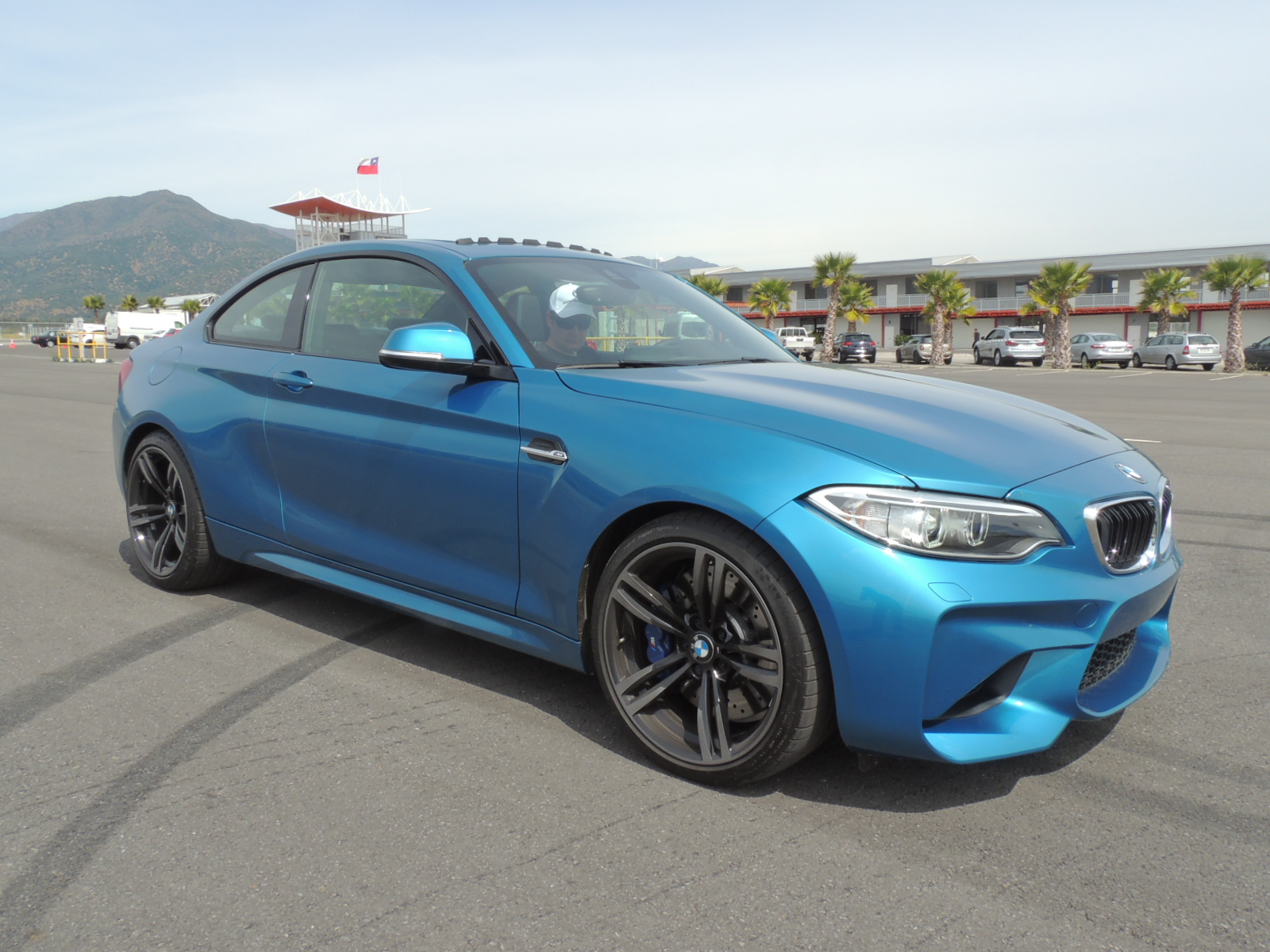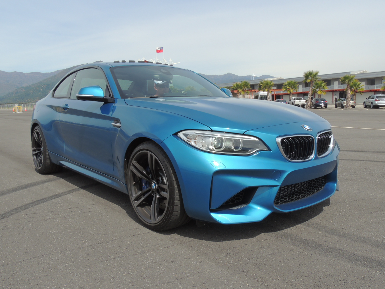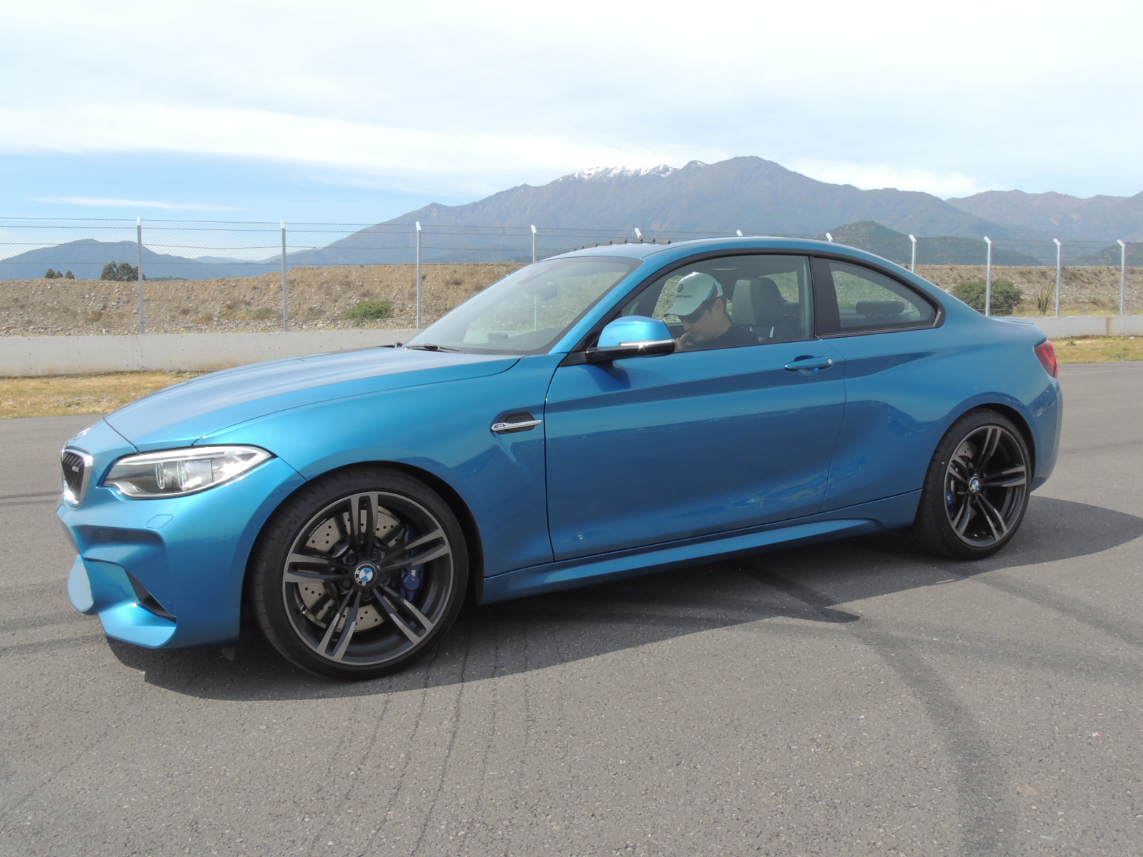 La tarde avanzaba, y el calor se hacía más y más intenso sobre el asfalto del Autódromo Internacional de Codegua. Los únicos dos ejemplares del modelo estrella que lanzaba BMW, se encontraban en pìsta, siendo imposible fotografiarlos en detalle. Pero ello aconteció hasta que gestionamos, con mucha suerte de por medio, gracias a nuestro amigo Max Solari, asesor de ventas de BMW Santiago, poder conseguir una unidad recién entregada a un cliente, que estaba invitado al evento. Se trataba de un BMW M2 Coupé 2017 en Long Beach Blue metalizado.