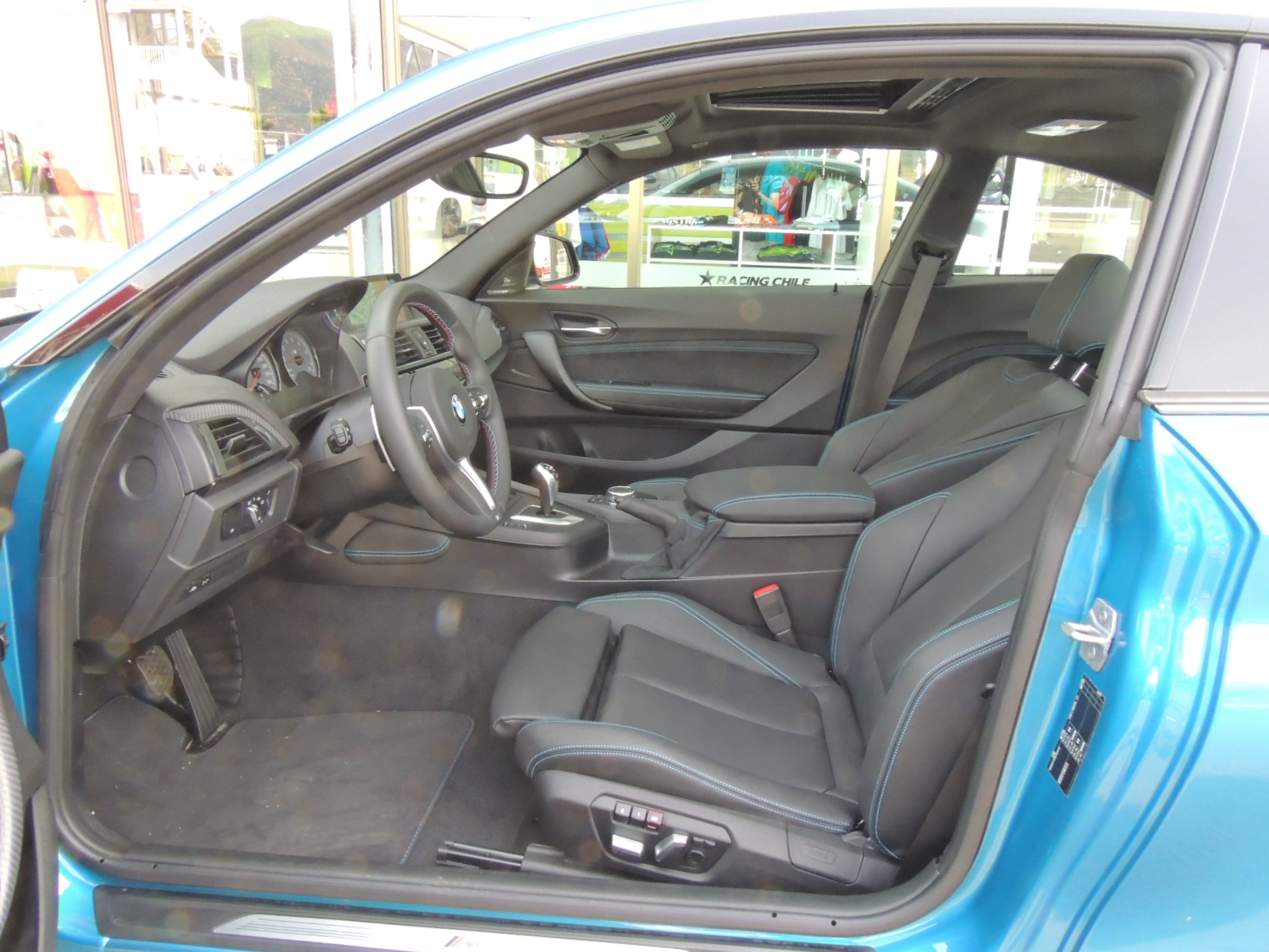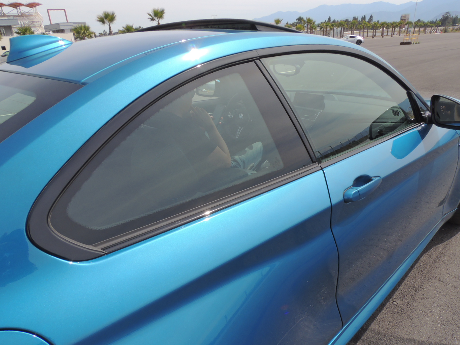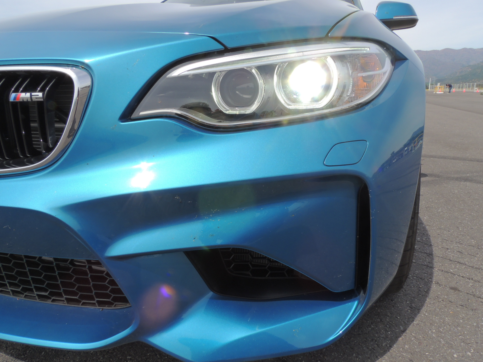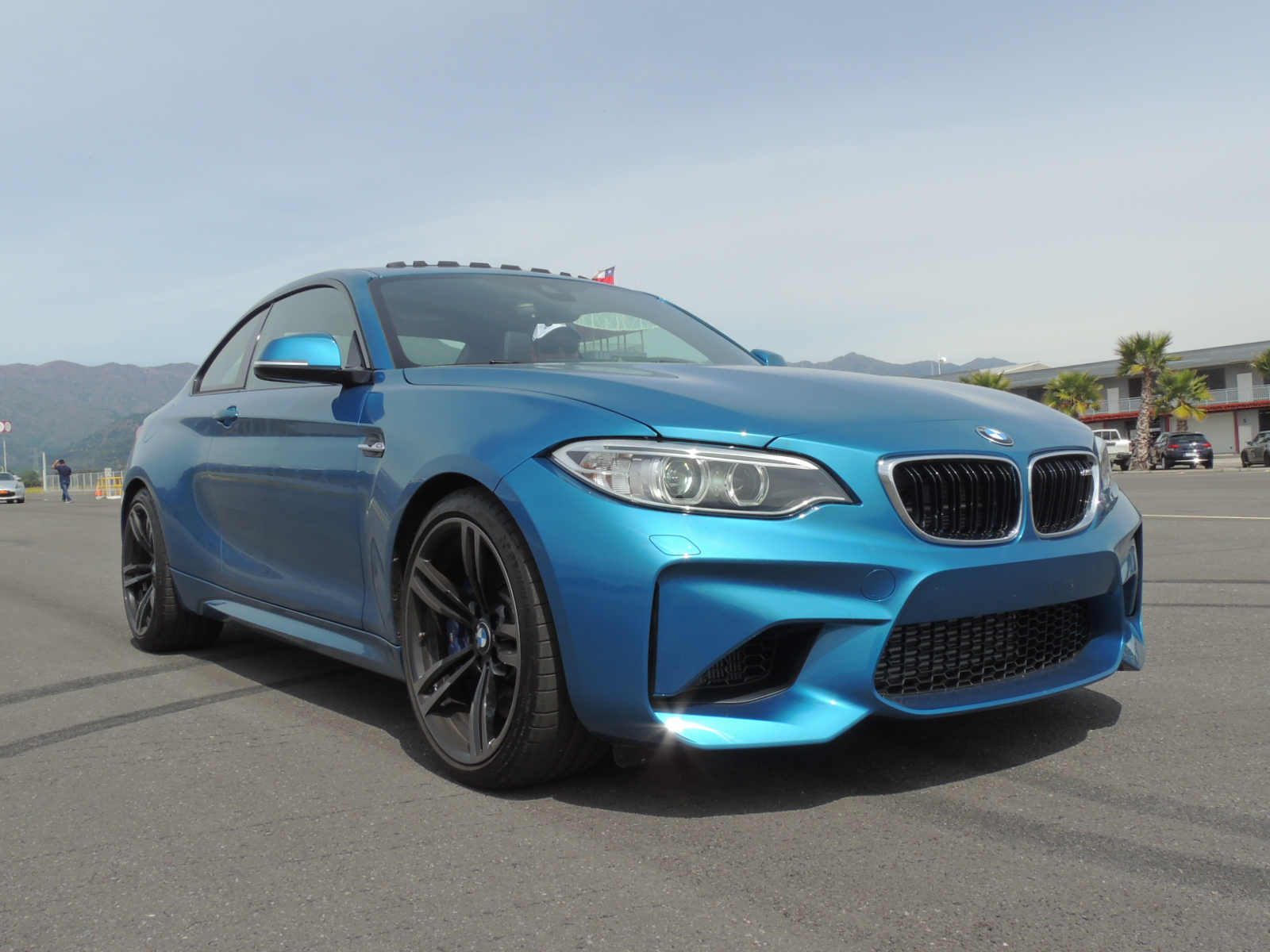 La tarde avanzaba, y el calor se hacía más y más intenso sobre el asfalto del Autódromo Internacional de Codegua. Los únicos dos ejemplares del modelo estrella que lanzaba BMW, se encontraban en pìsta, siendo imposible fotografiarlos en detalle. Pero ello aconteció hasta que gestionamos, con mucha suerte de por medio, gracias a nuestro amigo Max Solari, asesor de ventas de BMW Santiago, poder conseguir una unidad recién entregada a un cliente, que estaba invitado al evento. Se trataba de un BMW M2 Coupé 2017 en Long Beach Blue metalizado.