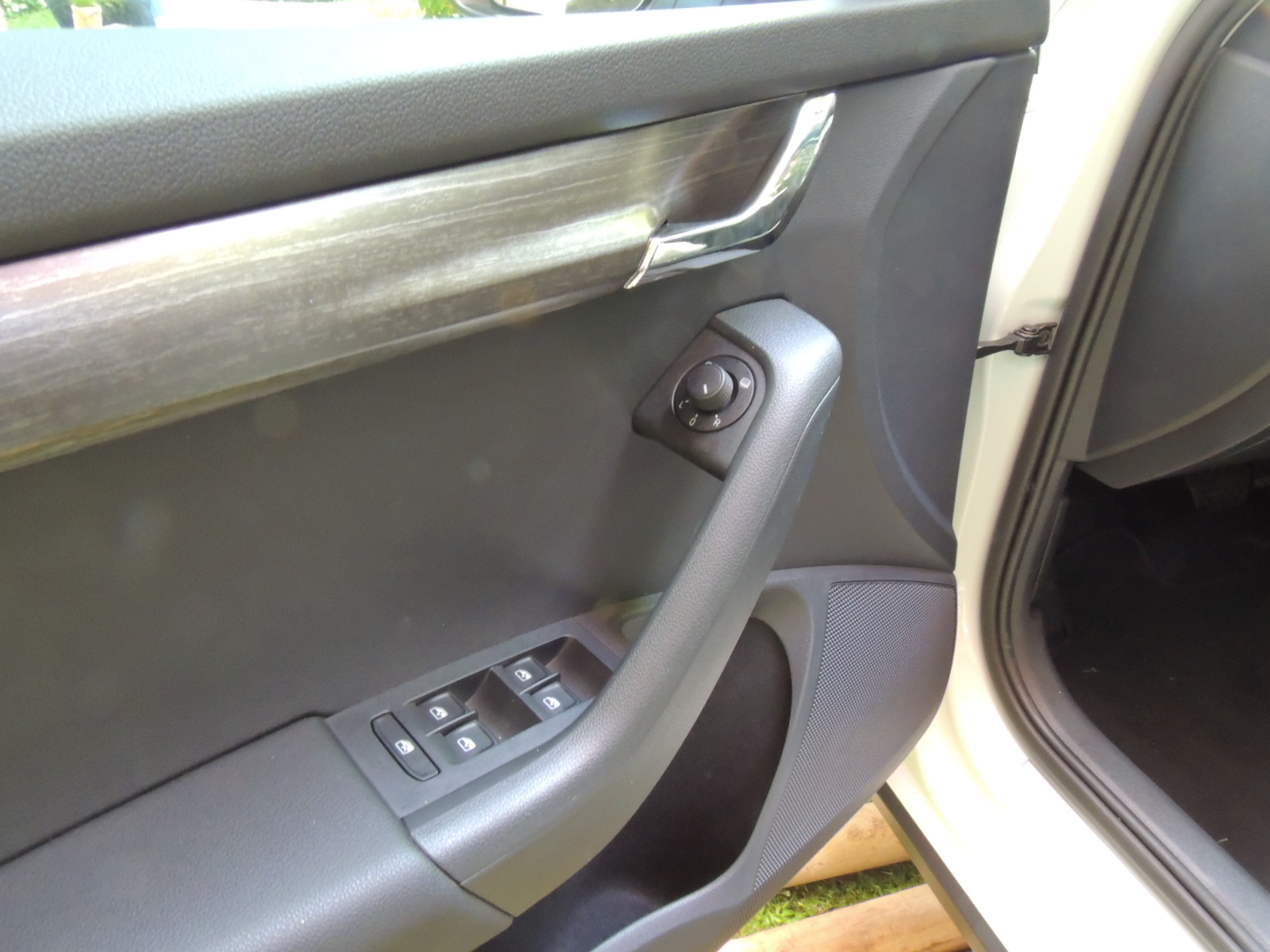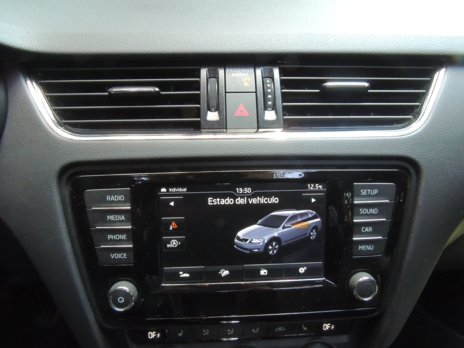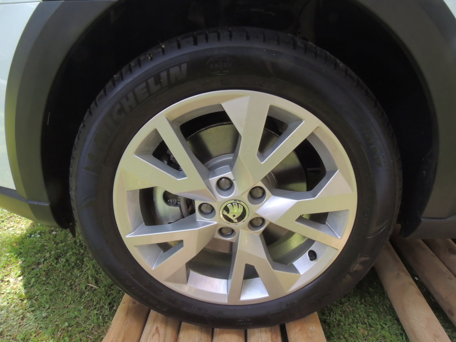 Lateralmente, lo primero que concentra nuestra atención es el aumento del despeje en 31 mm, llegando hasta los 171 mm, mientras que las molduras laterales negras se extienden por los pasos de ruedas y zócalo, otorgándole una apariencia más robusta a esta zona del auto. La parte baja de las puertas presenta franjas protectoras en plástico negro, mientras que la carcasa de los espejos retrovisores externos van pintadas en color aluminio y disponen de plegado eléctrico de serie, ya sea a voluntad o al accionar el comando de cierre a distancia. Otro elemento distintivo son sus barras longitudinales de techo negras (ad contraris del Octavia Combi que son satinadas).