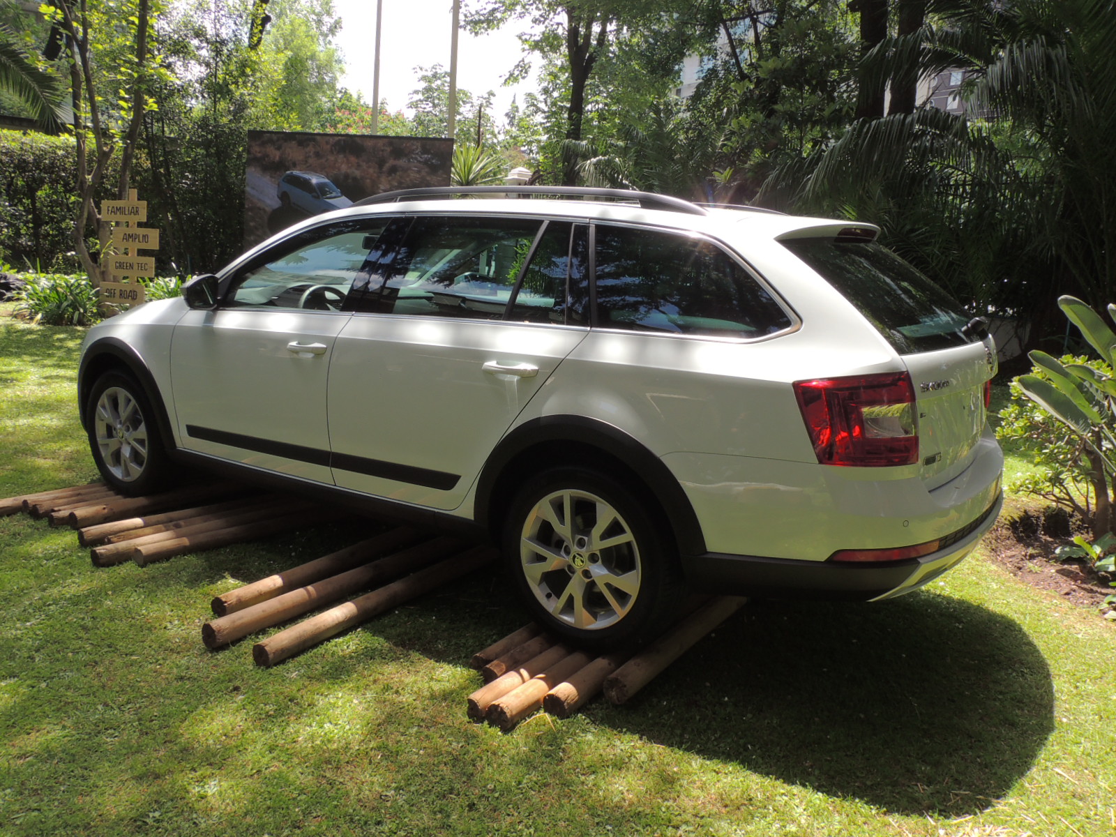 Los extensos jardines de la Embajada de la República de Checoslovaquia, enclavada en pleno barrio El Golf, fueron el escenario escogido por Porsche Chile SpA, importador y representante oficial de Skoda, para presentar la variante más outdoor del Octavia Combi, el nuevo Scout 2017, un Station Wagon, que se reconoce inmediatamente por su llamativo aspecto.