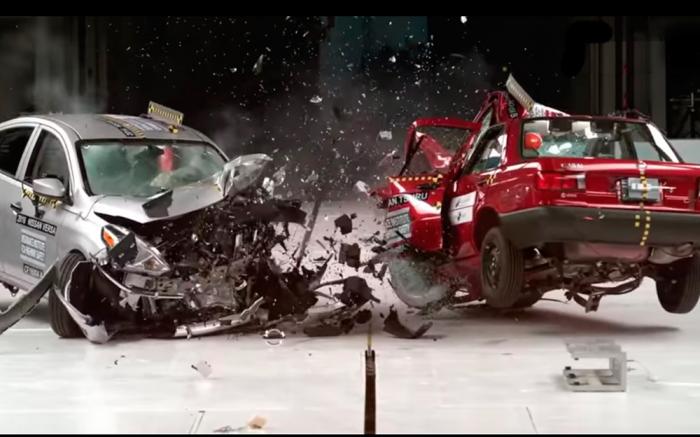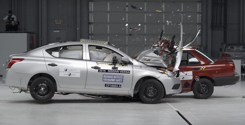 El test fue realizado entre un Nissan Versa 2016, vendido en Estados Unidos y un Nissan Tsuru 2015, vendido en México. Ambos vehículos son fabricados en México y han sido evaluados anteriormente por IIHS y Latin NCAP respectivamente, el Versa fue calificado como “bueno” por IIHS y por su parte el Tsuru/V16 obtuvo cero estrellas para ocupante adulto y para ocupante infantil en Latin NCAP.