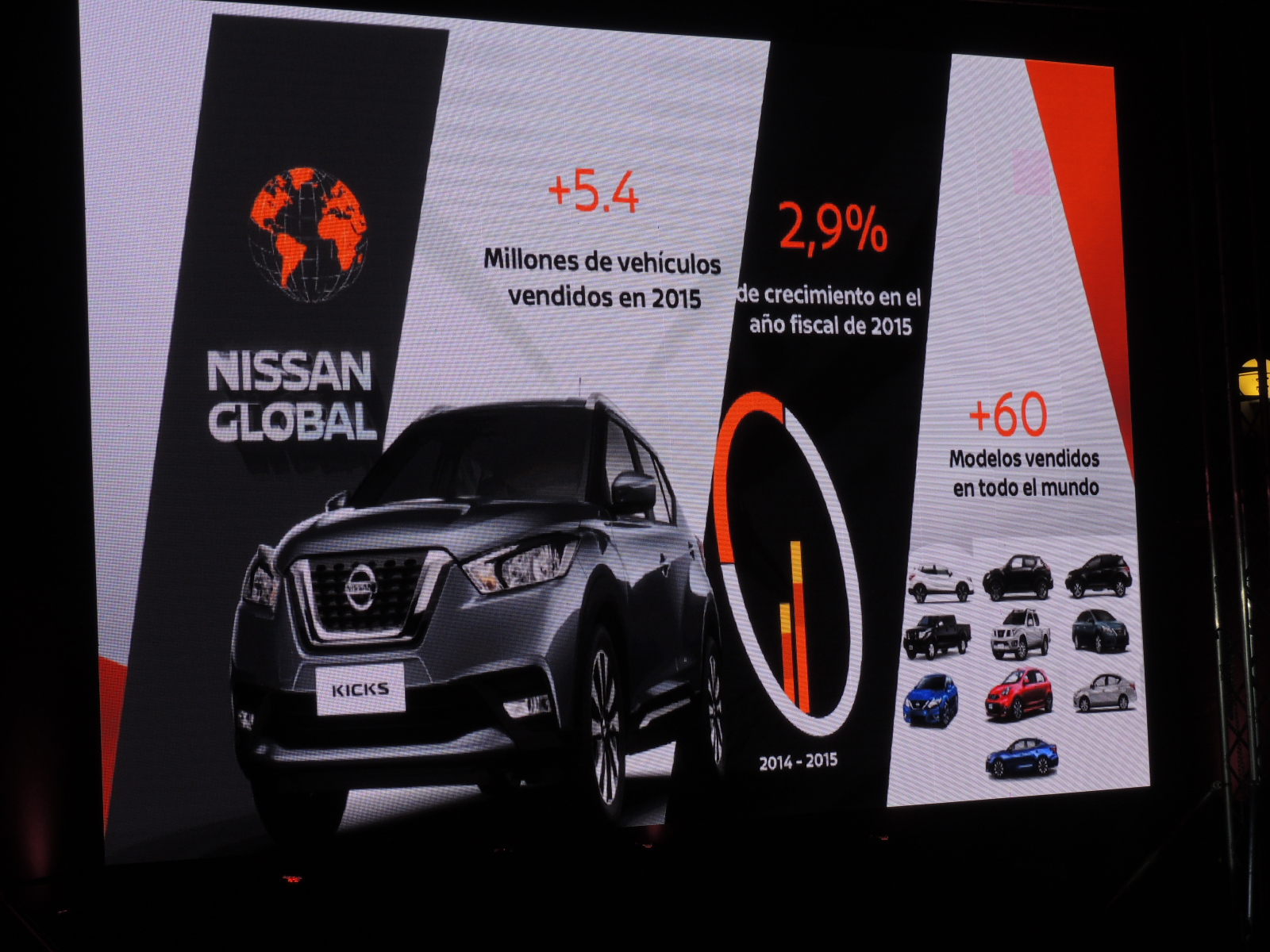 Nissan ha vendido 5,4 millones de unidades, tomando en cuenta su extenso portafolio conformado por 60 modelos en el mundo, con un crecimiento del 3%. Kicks es uno de los primeros modelos que se está lanzando a nivel global, puesto que se espera que sea comercializado en cerca de 80 mercados.