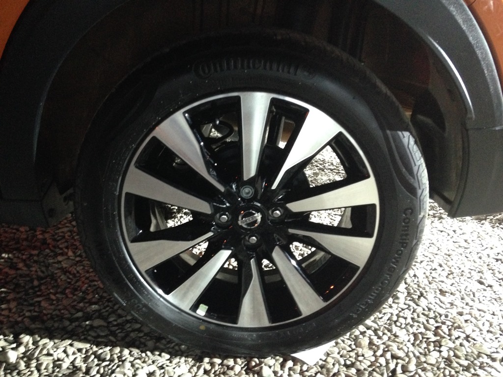 Al ver sus líneas, y sobre todo su color naranjo metálico, no pudo dejar de recordarme el diseño de hermano mayor, Murano. Incluso algunos periodistas, llegaron a calificarlo como un «Mini Murano», con claros sellos del ADN Nissan expresados en su frontal, mediante la máscara V-Motion, los ópticos con forma de boomerang, mientras que en los laterales vemos los pasos de ruedas abultados, el techo flotante y la presencia de los guarnecidos de resina a lo largo de todos los bajos de la carrocería.