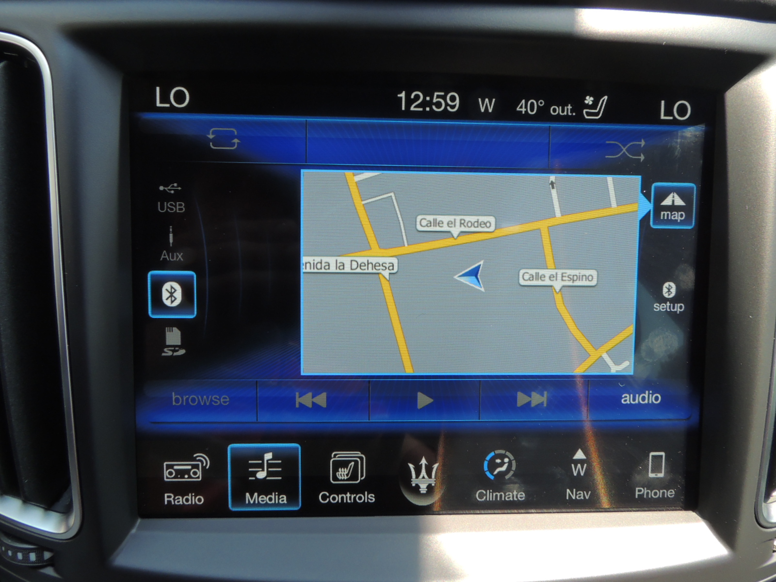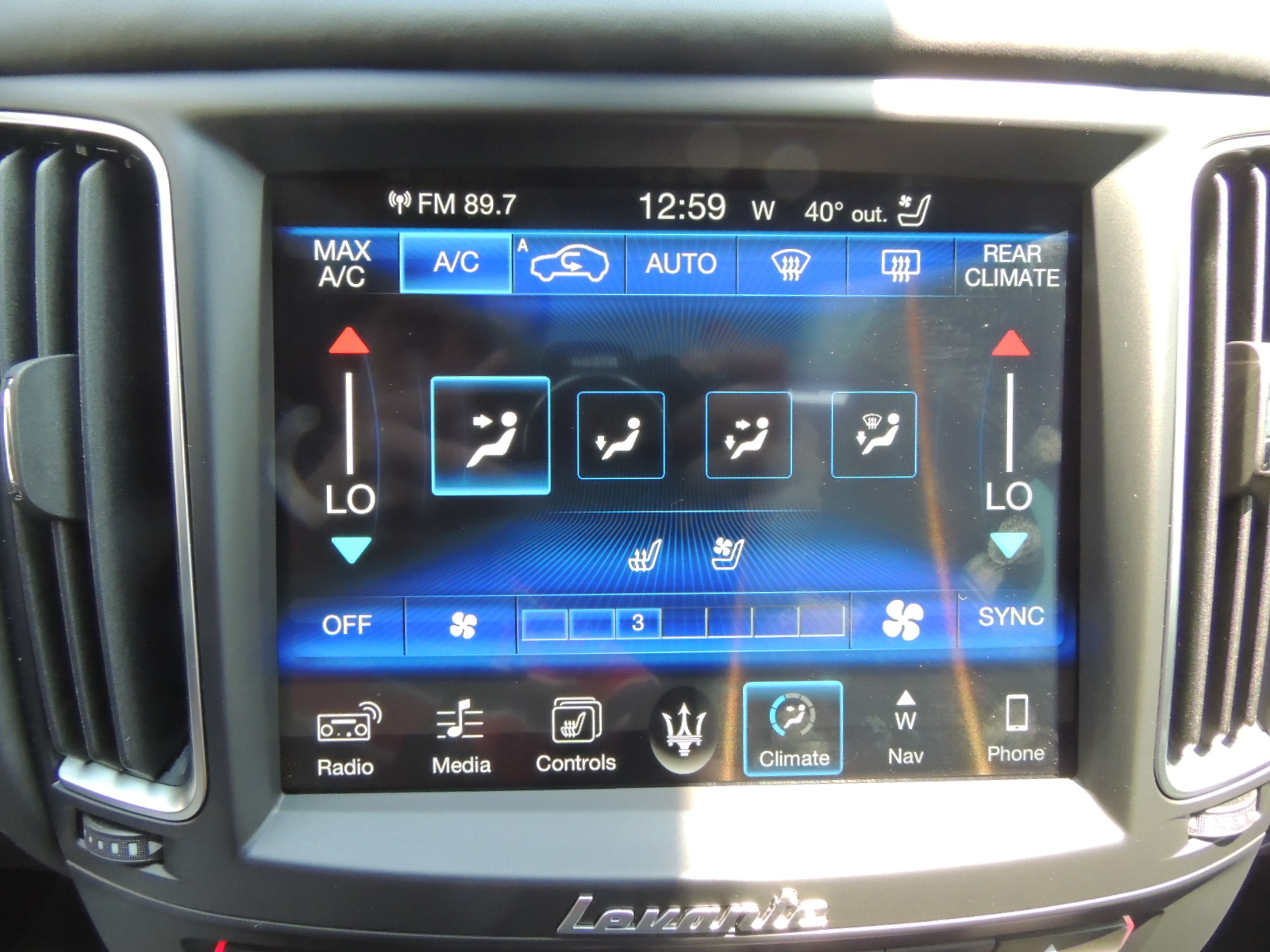 El climatizador automático bizona adecúa automáticamente la intensidad de la ventilación según la temperatura exterior y permite a todos los que se encuentren a bordo, tanto delante como detrás, establecer grados de calor diversificados. Las 13 salidas de aire de las que está dotado el sistema le permiten calentar o enfriar el ambiente con mucha rapidez y mantener fácilmente las condiciones climáticasconfiguradas mediante la pantalla del Maserati Touch Control Plus o los mandos del cuadro inferior, tal como lo realizamos durante esa calurosa tarde.