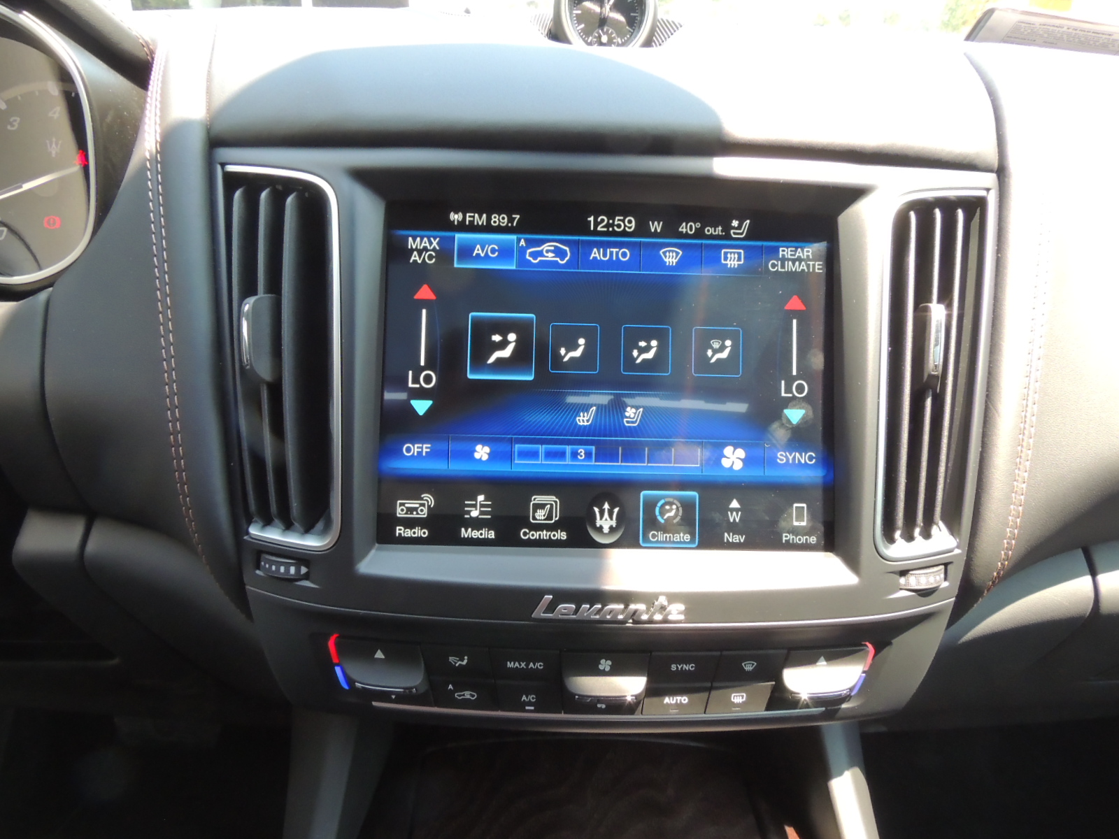 puede equiparse con un climatizador de cuatro zonas, con dos o más mandos en la parte trasera del túnel central, tal como lo tenía este Levante S.