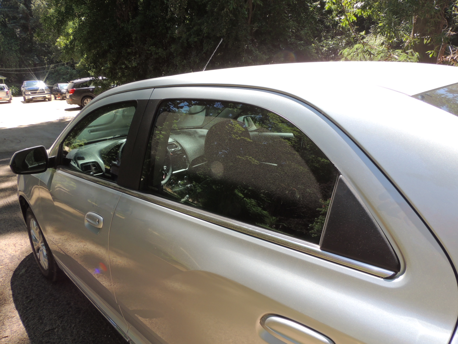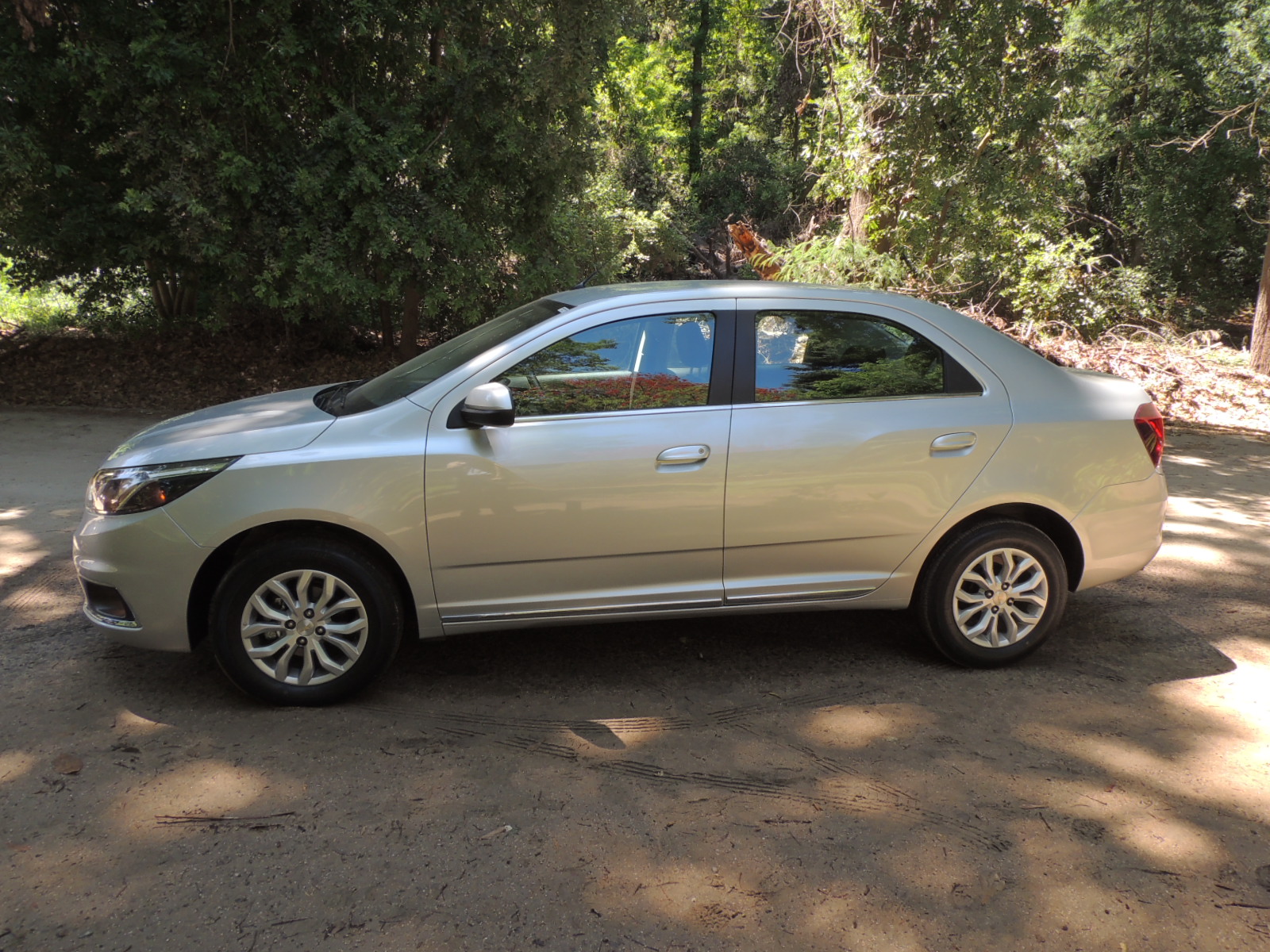 De costado, Cobalt se muestra con un capó ligeramente más largo que el de Prisma, pero con una estampa más conservadora, eso sí con tres volúmenes claramente definidos. La superficie vidriada es amplia. Los espejos son parcialmente del color del auto. Se desliza sobre neumáticos Bridgestone Turanza ER300 de medida 195/65 R15 con llantas de aleación ligera.