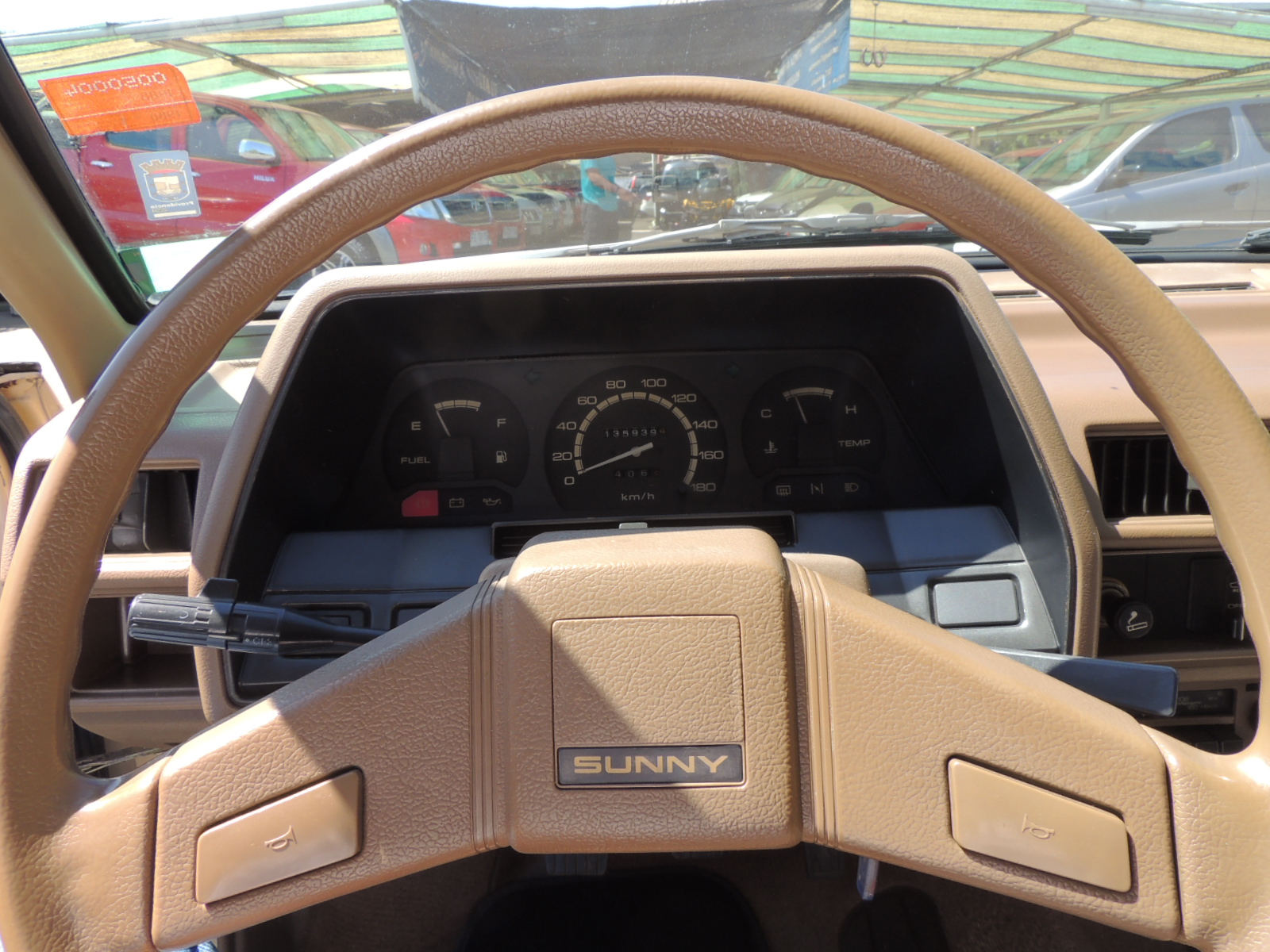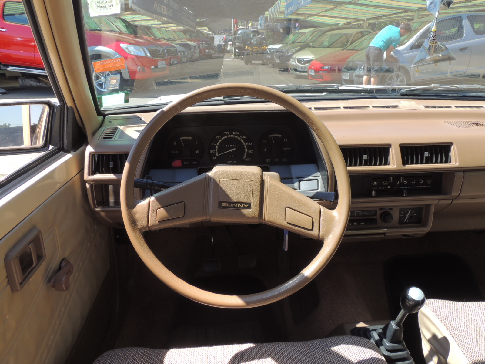 El volante, en los DX, era de dos rayos con la inscripción Sunny al centro, con bocinas en ambos lados, mientras que los GL presentaban un timón con los rayos dispuesto en una V invertida con la bocina al centro. Los MY88-91 llevaban la inscripción Nissan. Delante de este elementos, éstan ubicados los telecomados de las luces/intermitentes al lado izquierdo y al derecho el conmutador de los limpiaparabrisas delanteros.