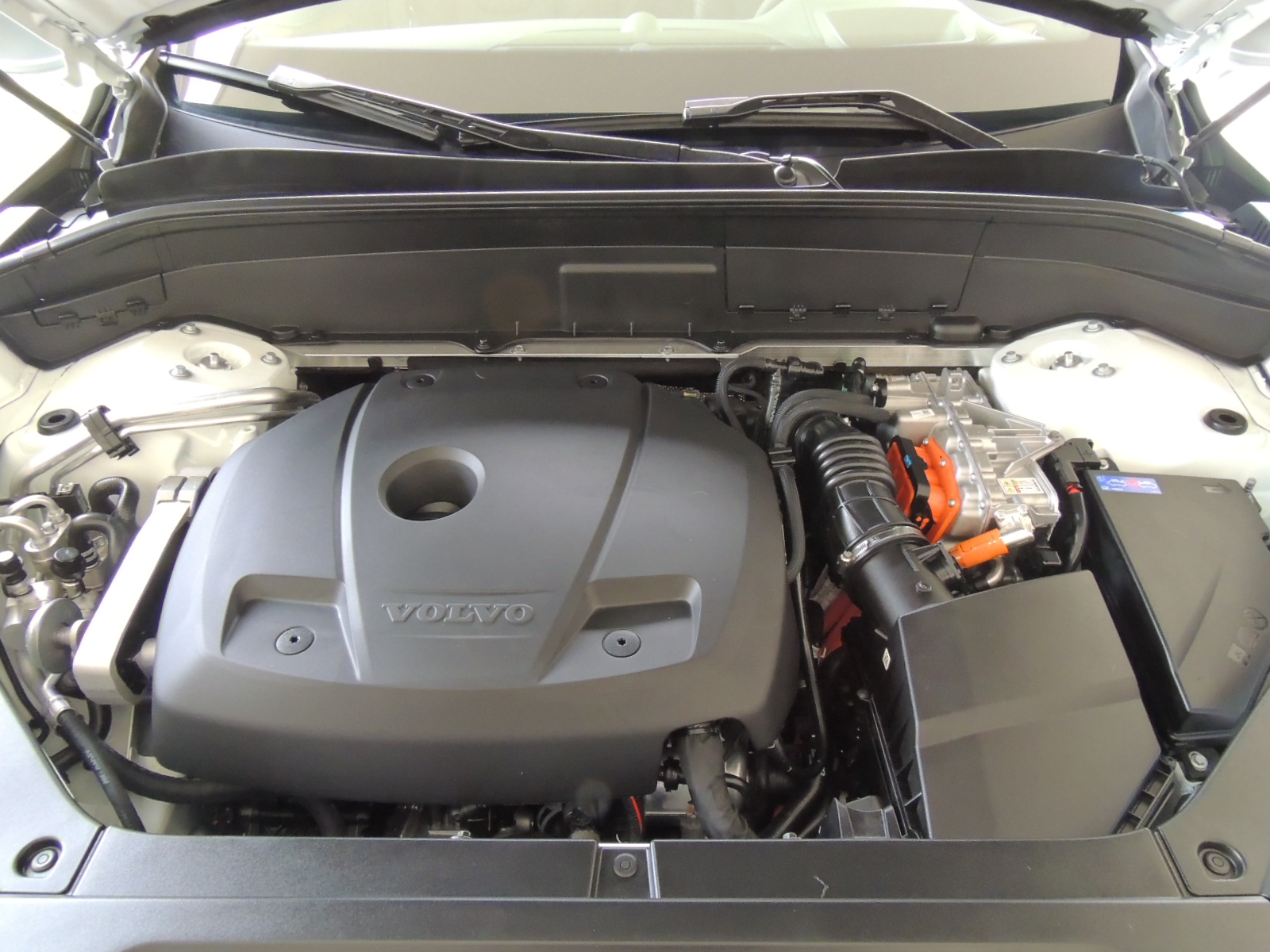 Bajo su enorme capó encontramos su parte de su doble corazón conformado, primeramente por un motor bencinero (T6) de 2 litros de desplazamiento, con nada menos que 320 CV y un torque máximo de 400 Nm, que se encarga de mover el eje delantero. Este motor fue optimizado por el fabricante para operar de manera conjunta con un motor eléctrico de 80 CV y 240 Nm de par, que acciona las ruedas posteriores. Así se dispone de tracción integral sin tener que instalar un árbol de transmisión que recorra a lo largo el auto.