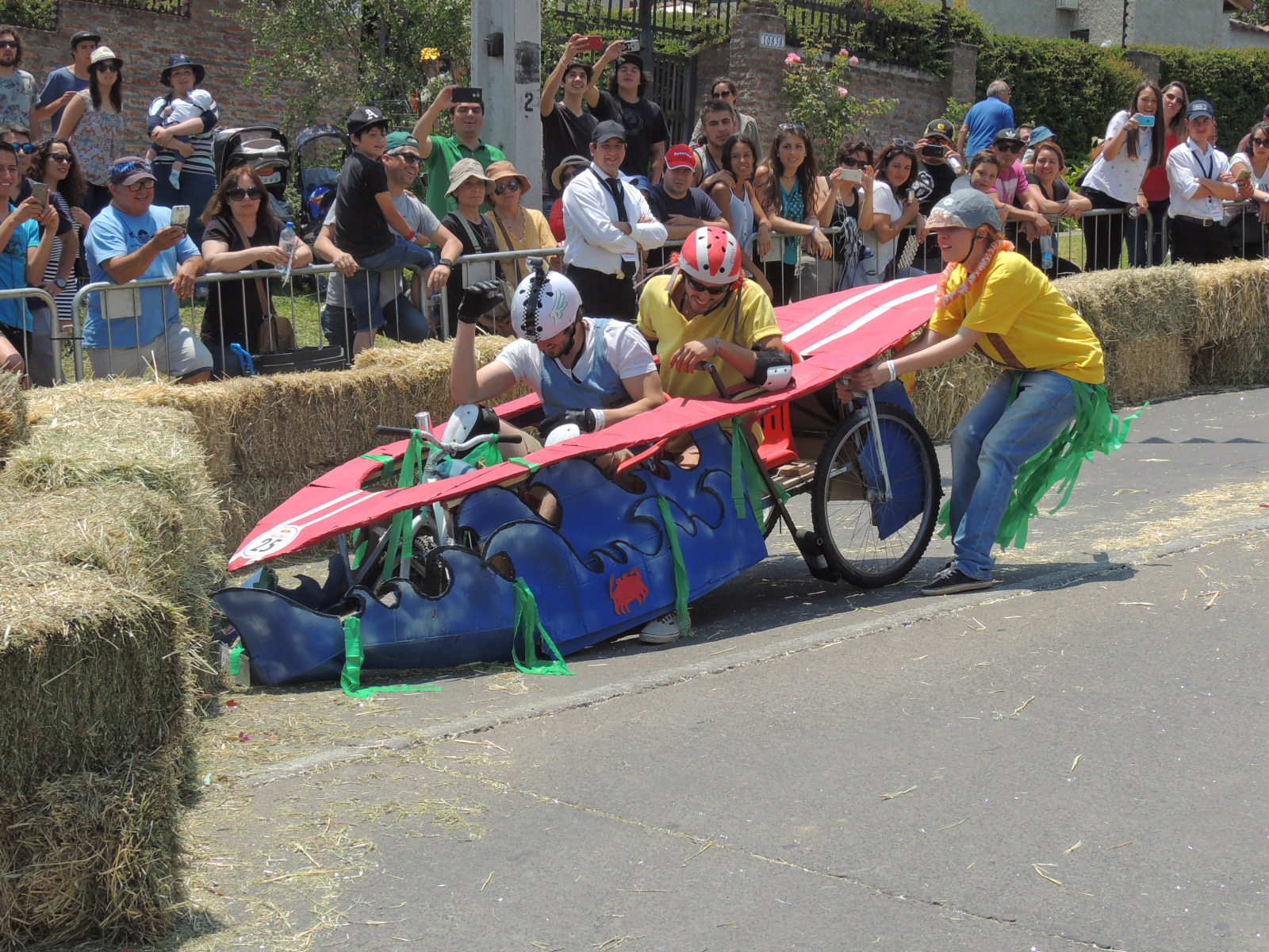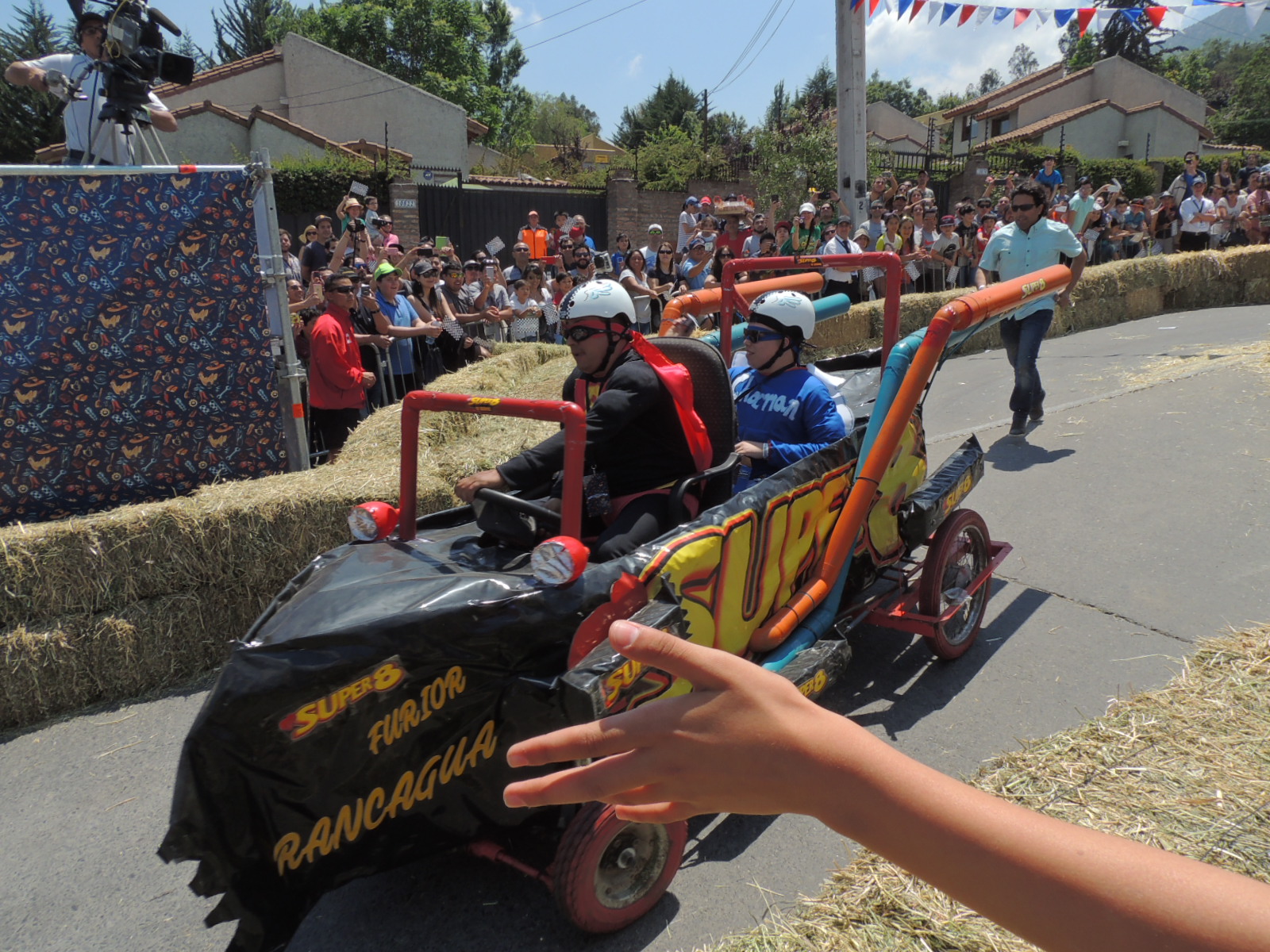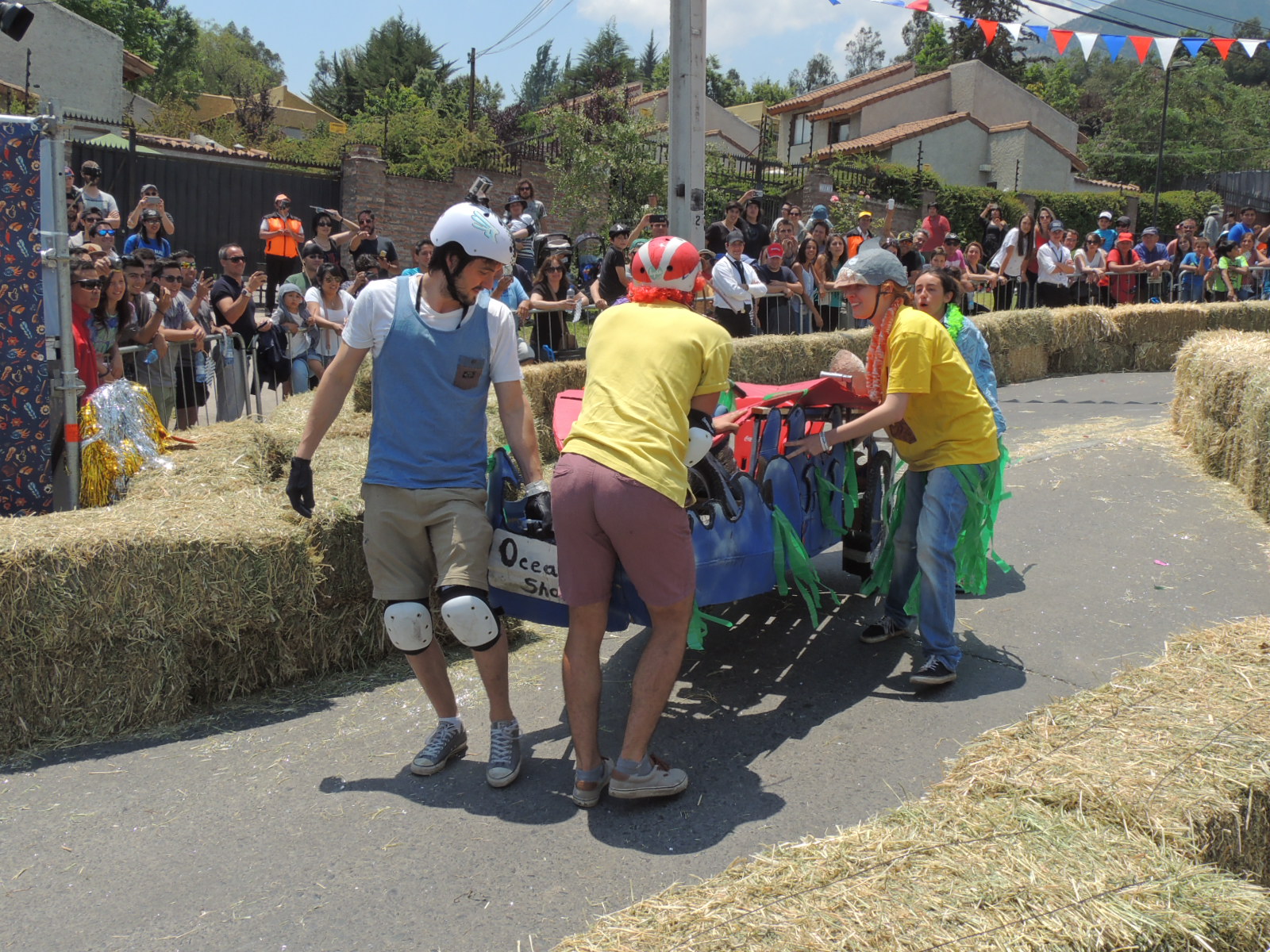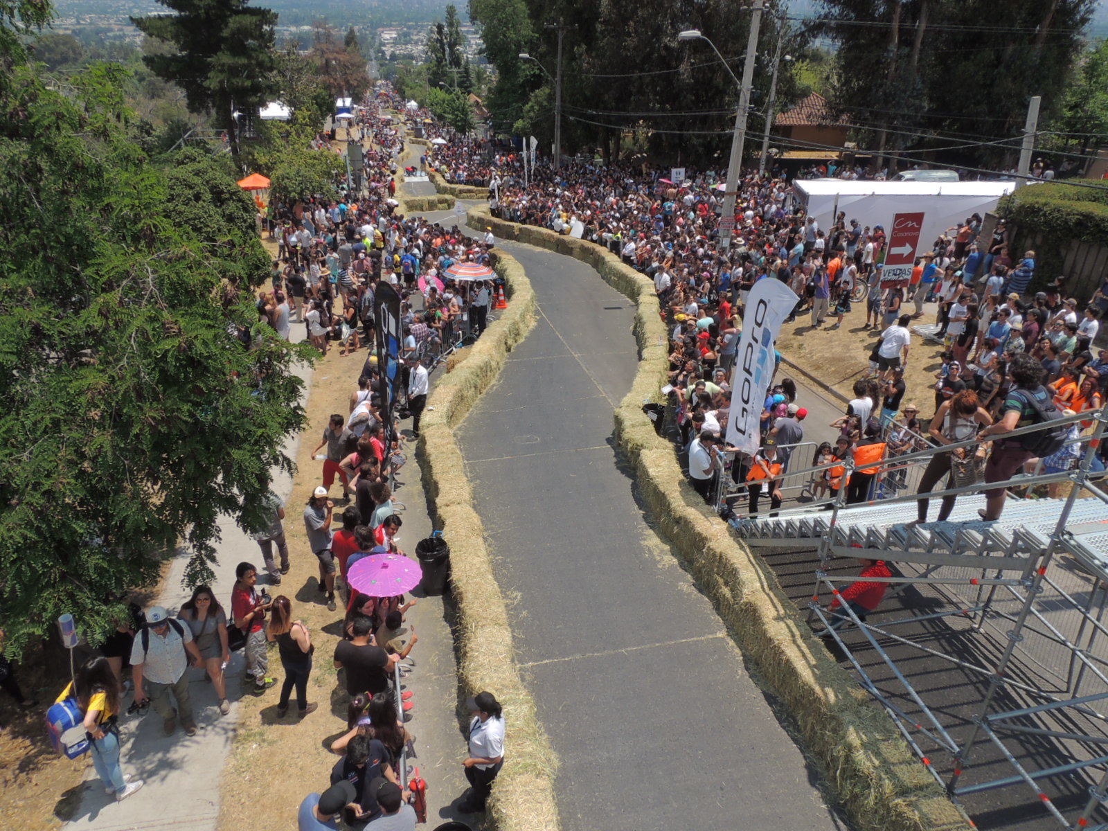 Uno tras otro y llenos de energía, los 42 equipos seleccionados de entre los cerca de mil diseños provenientes de todo Chile, recorrieron el trayecto en el menor tiempo posible, pero también fueron evaluados por la creatividad con que diseñaron los carros y por el espectáculo que los integrantes de cada grupo debían desplegar para motivar a la gente antes de partir el descenso.
