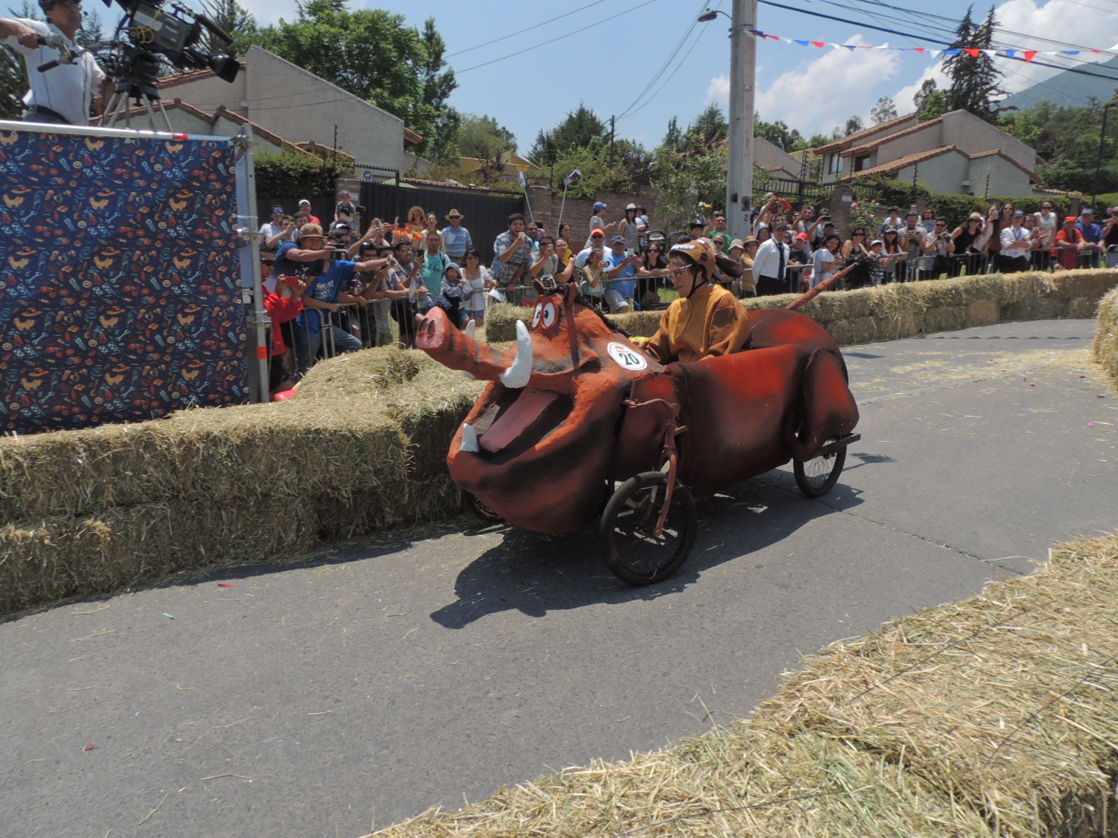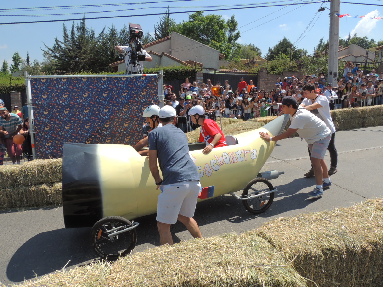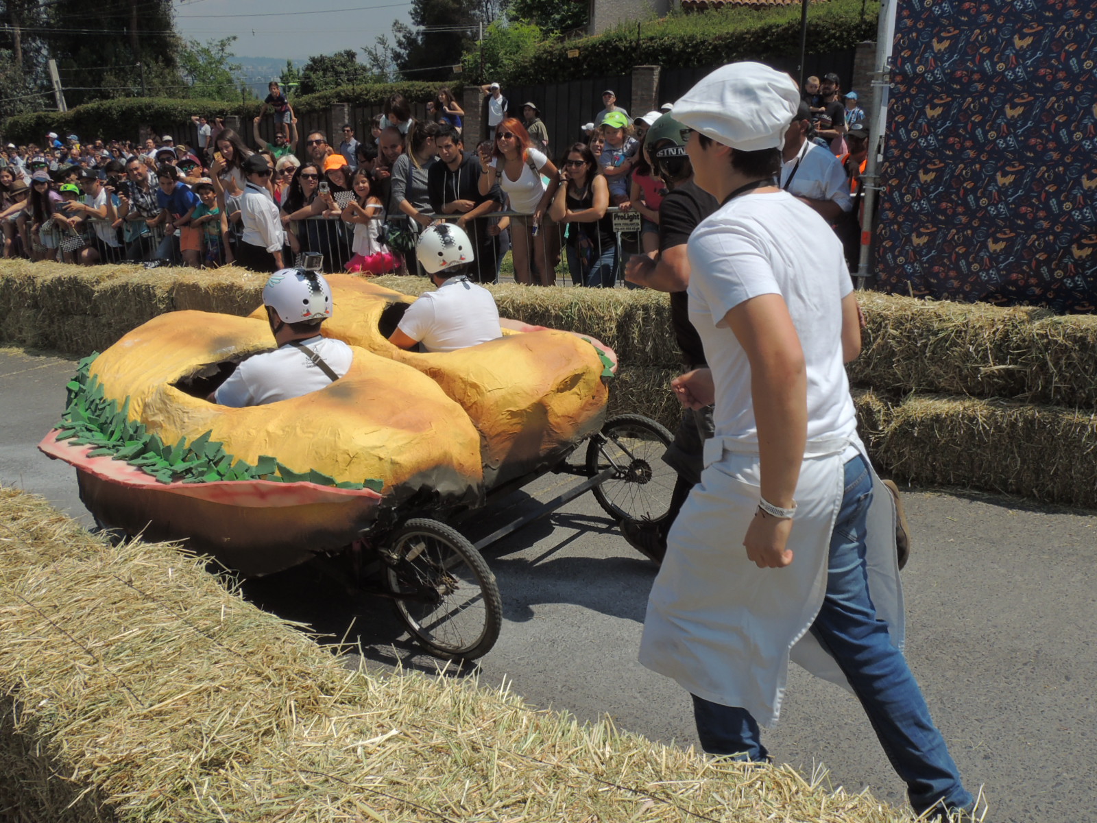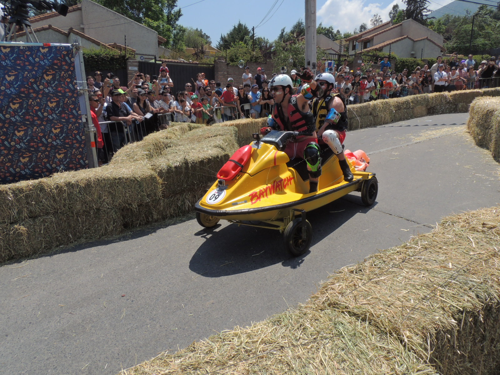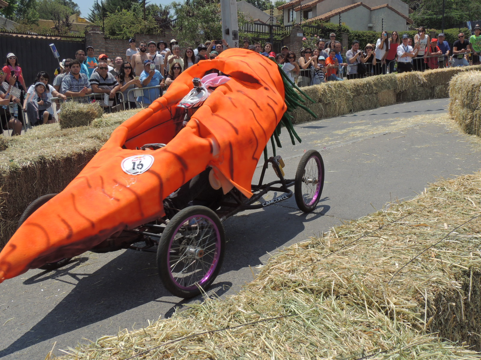 Uno tras otro y llenos de energía, los 42 equipos seleccionados de entre los cerca de mil diseños provenientes de todo Chile, recorrieron el trayecto en el menor tiempo posible, pero también fueron evaluados por la creatividad con que diseñaron los carros y por el espectáculo que los integrantes de cada grupo debían desplegar para motivar a la gente antes de partir el descenso.