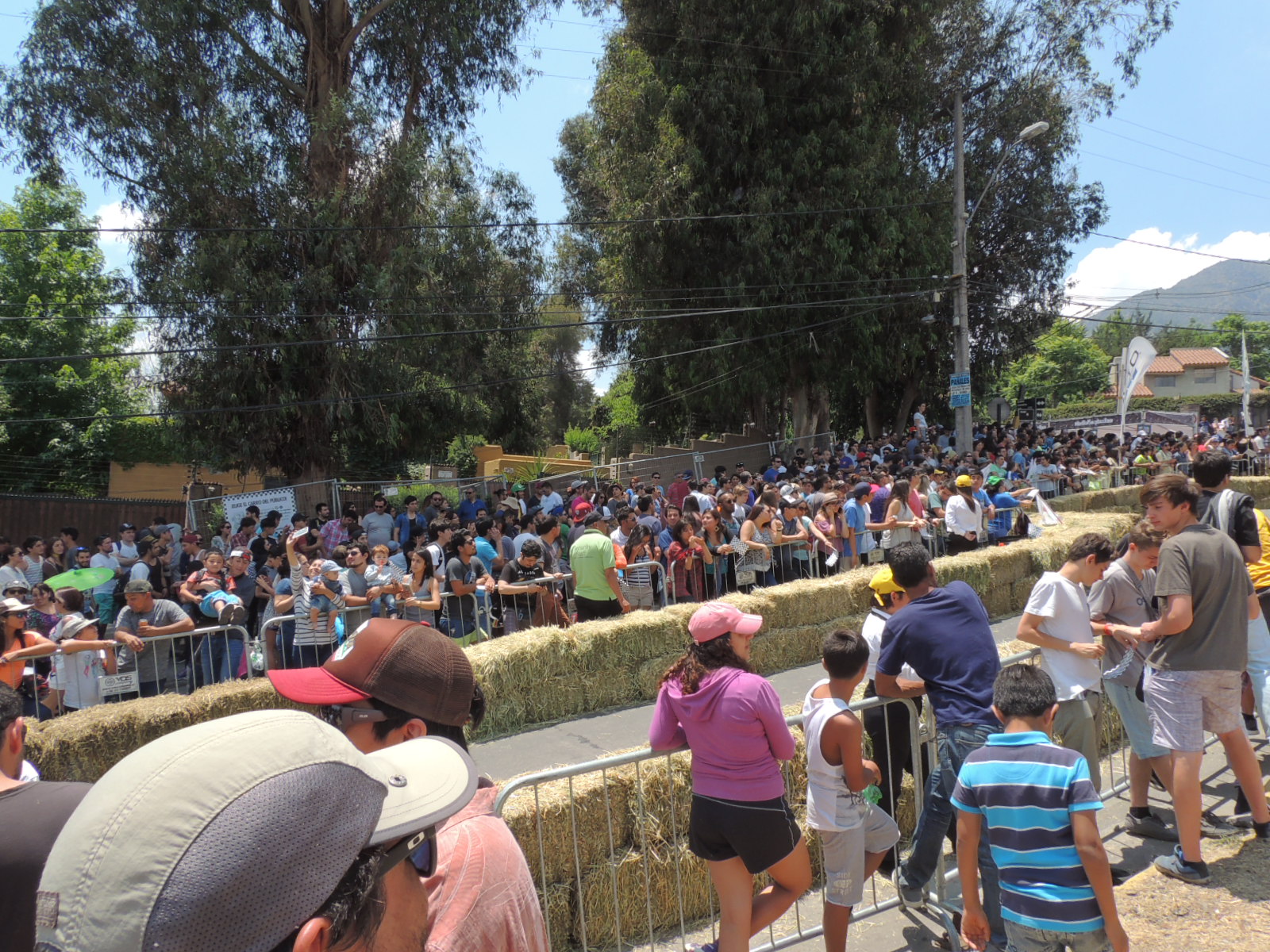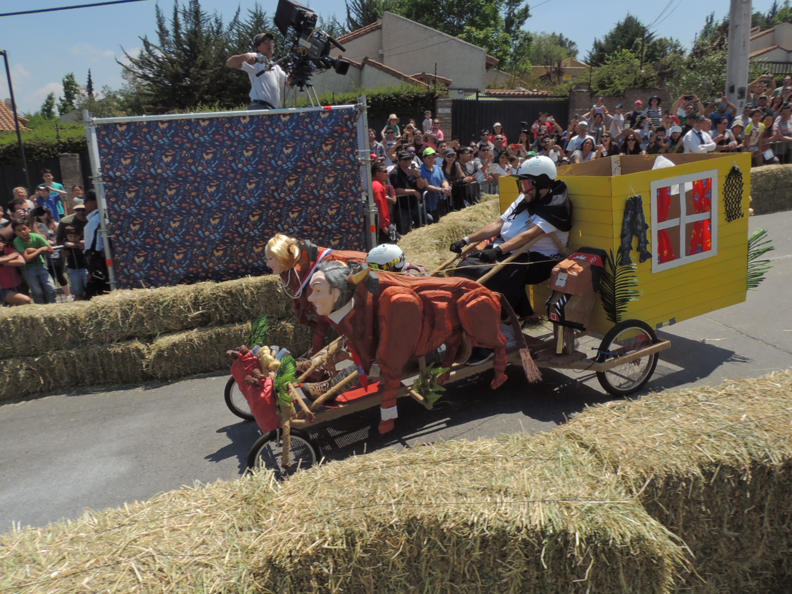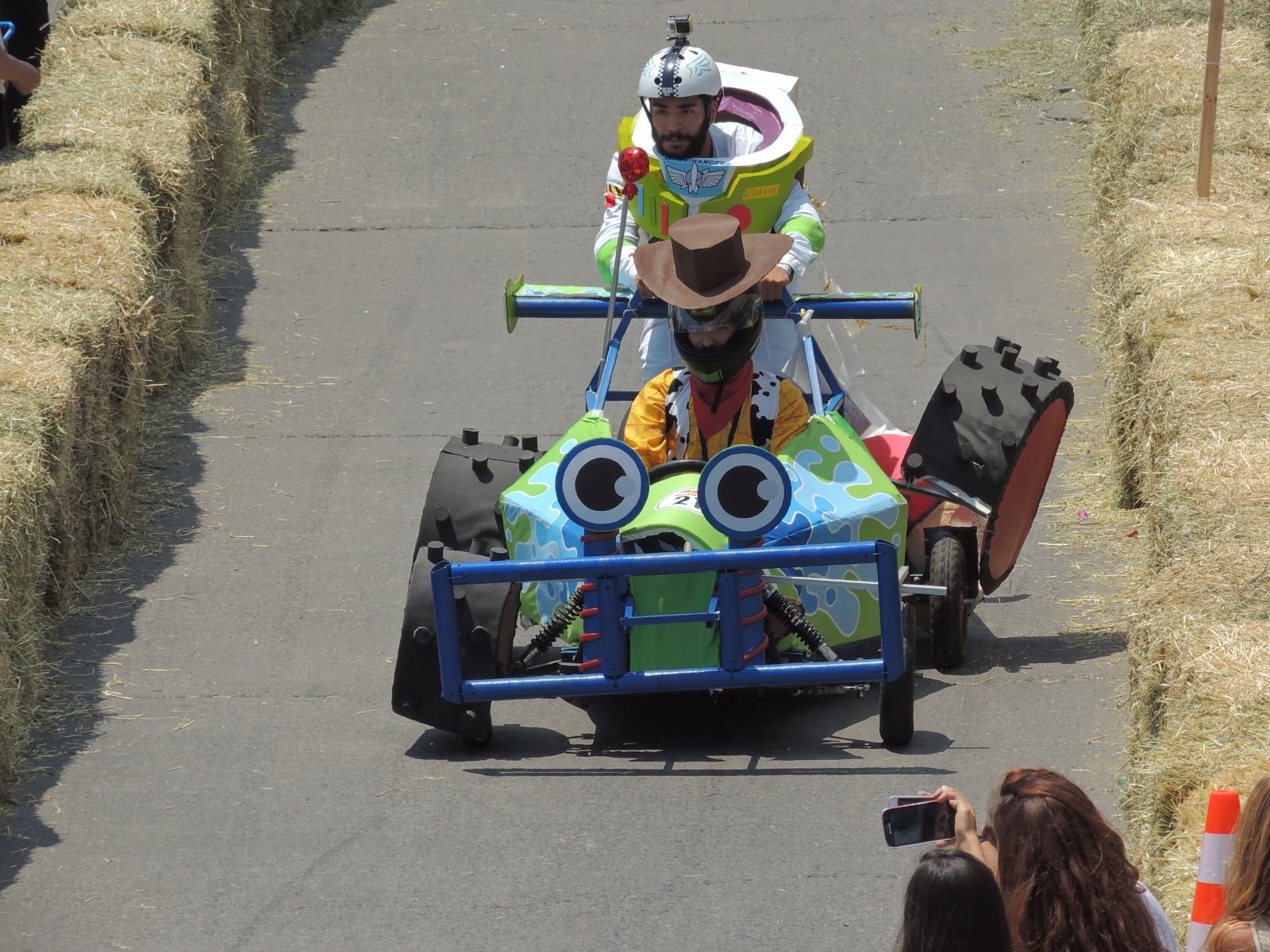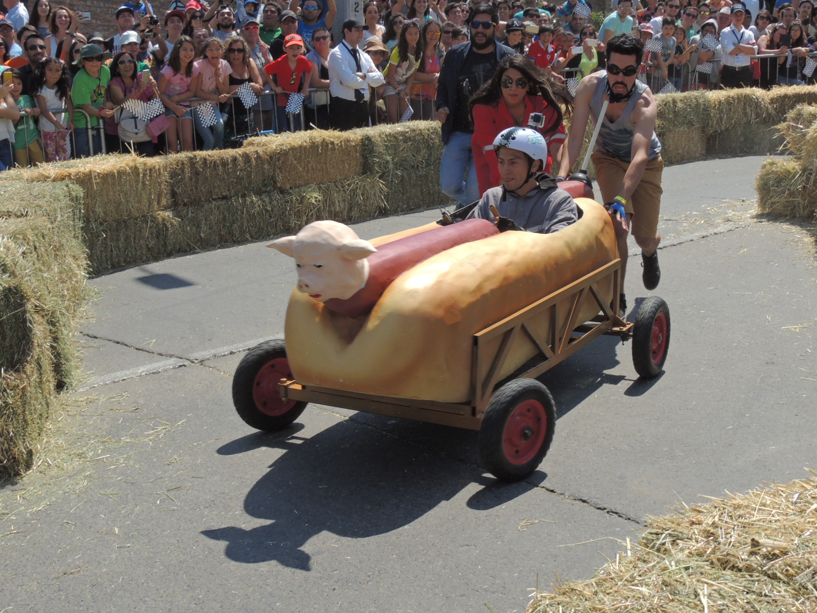 Uno tras otro y llenos de energía, los 42 equipos seleccionados de entre los cerca de mil diseños provenientes de todo Chile, recorrieron el trayecto en el menor tiempo posible, pero también fueron evaluados por la creatividad con que diseñaron los carros y por el espectáculo que los integrantes de cada grupo debían desplegar para motivar a la gente antes de partir el descenso.