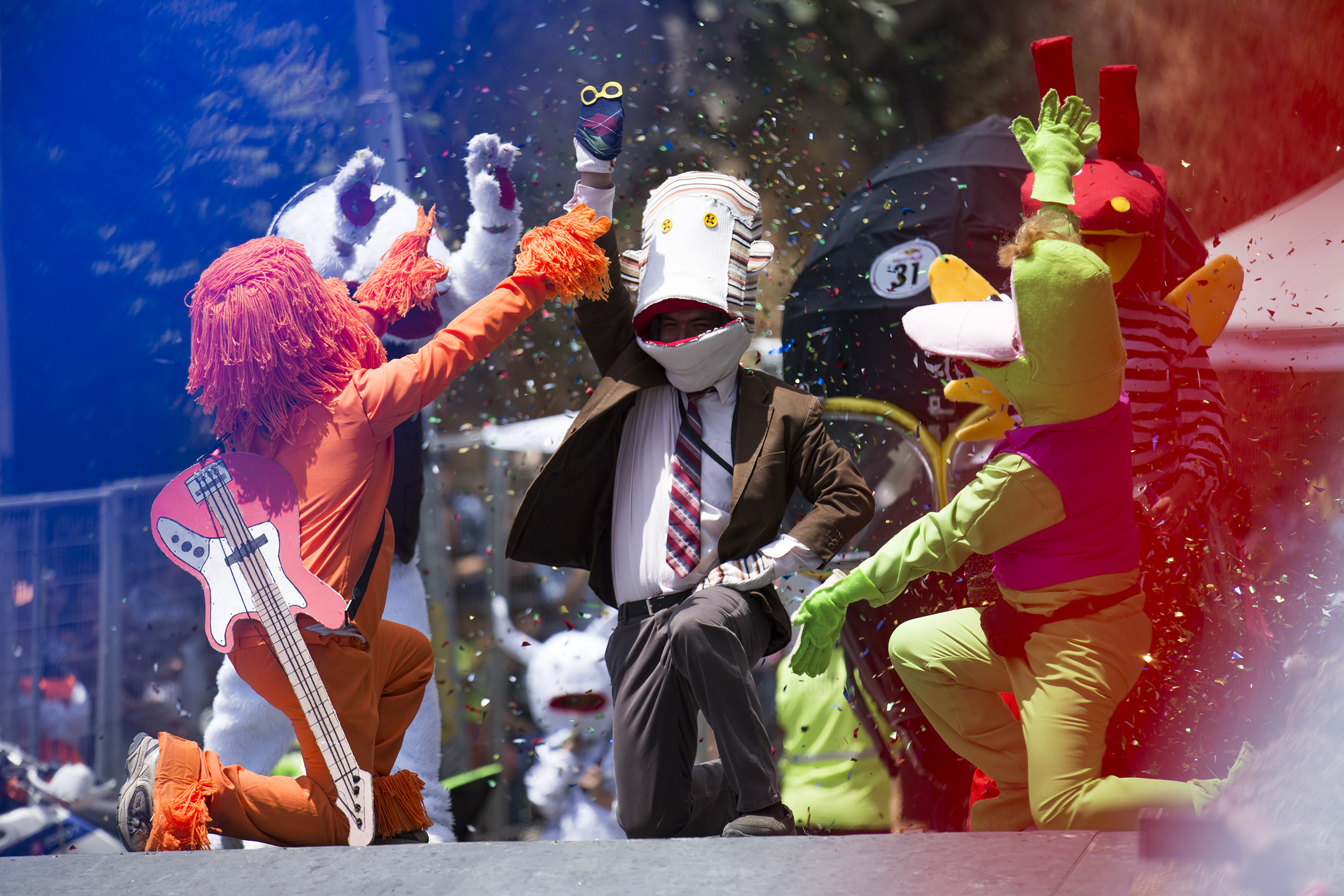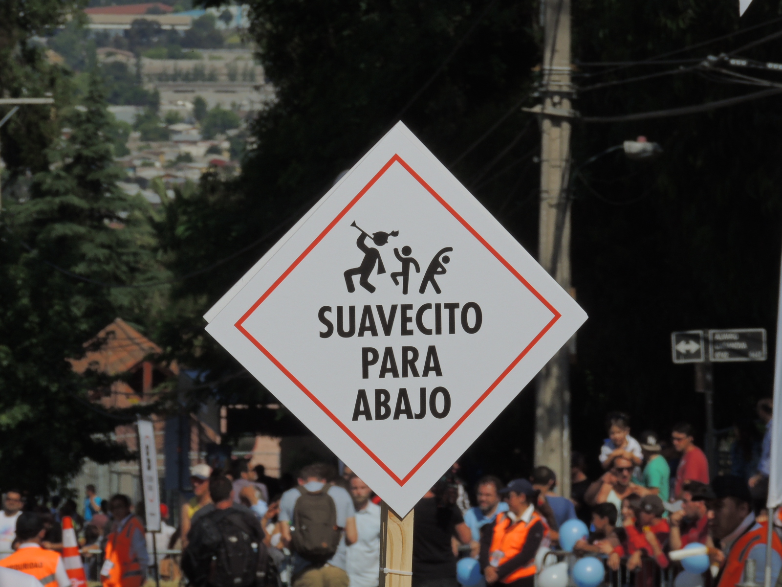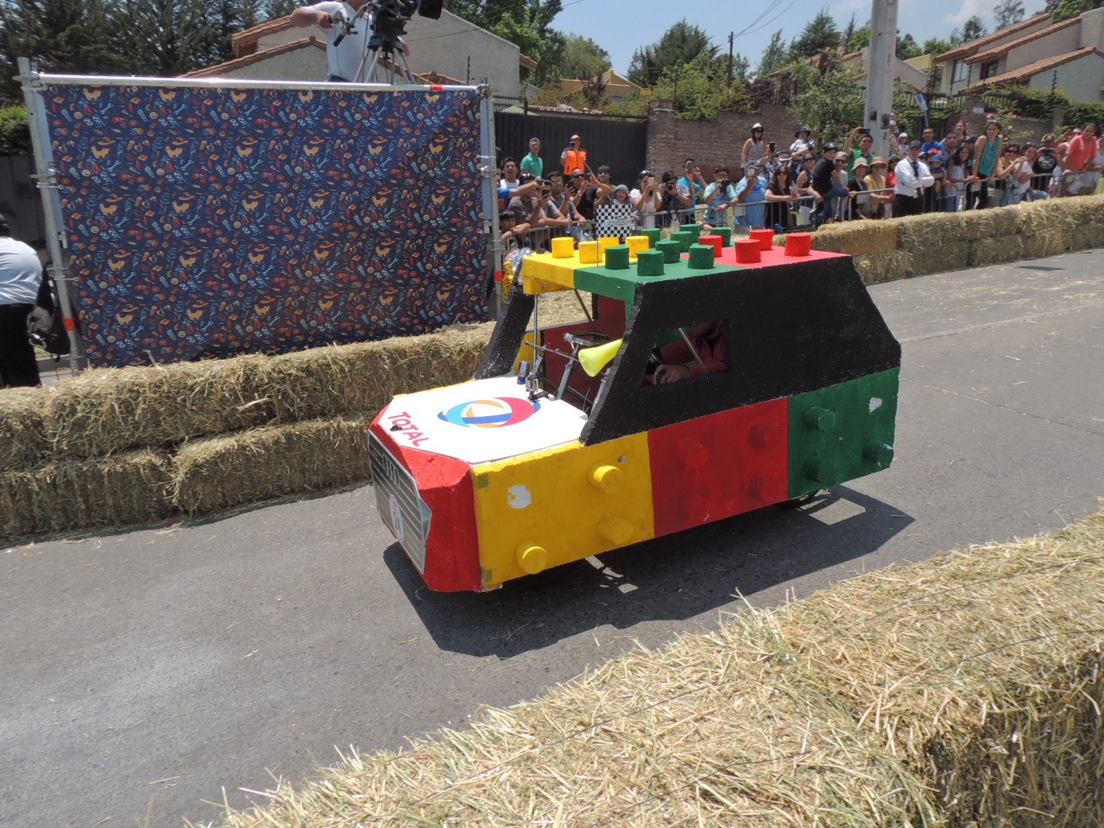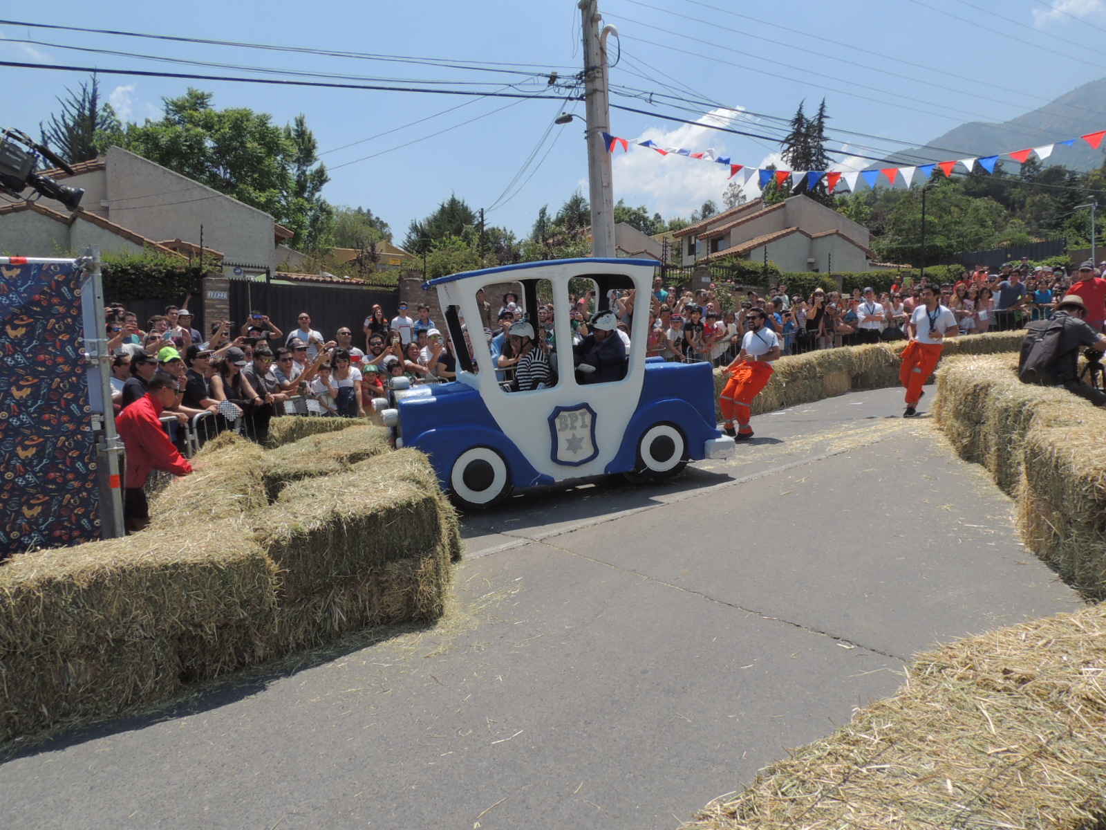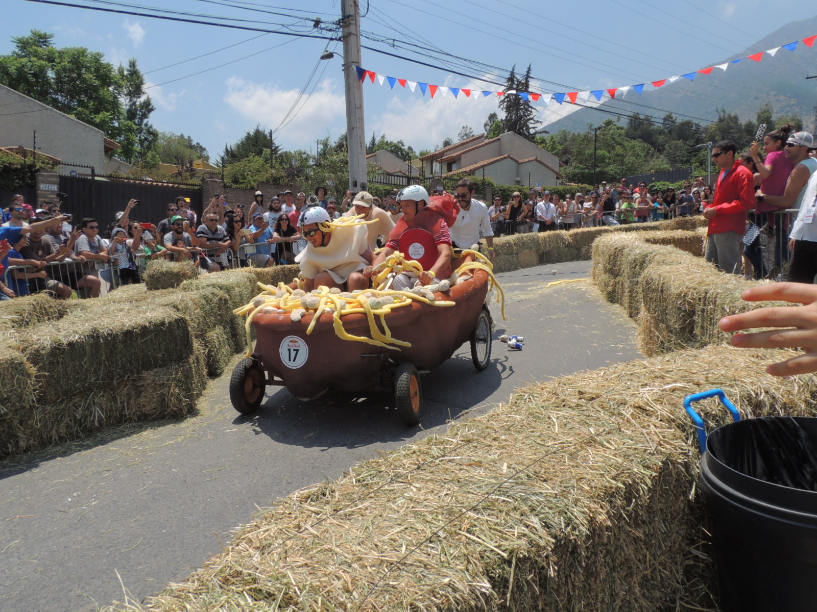 Uno tras otro y llenos de energía, los 42 equipos seleccionados de entre los cerca de mil diseños provenientes de todo Chile, recorrieron el trayecto en el menor tiempo posible, pero también fueron evaluados por la creatividad con que diseñaron los carros y por el espectáculo que los integrantes de cada grupo debían desplegar para motivar a la gente antes de partir el descenso.