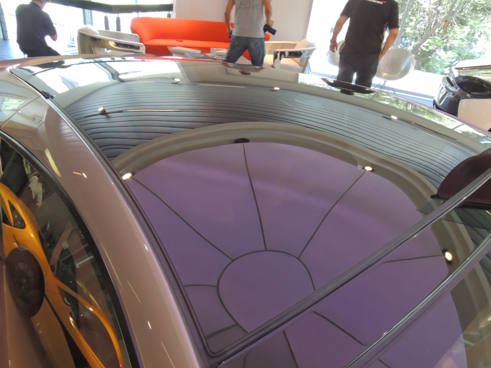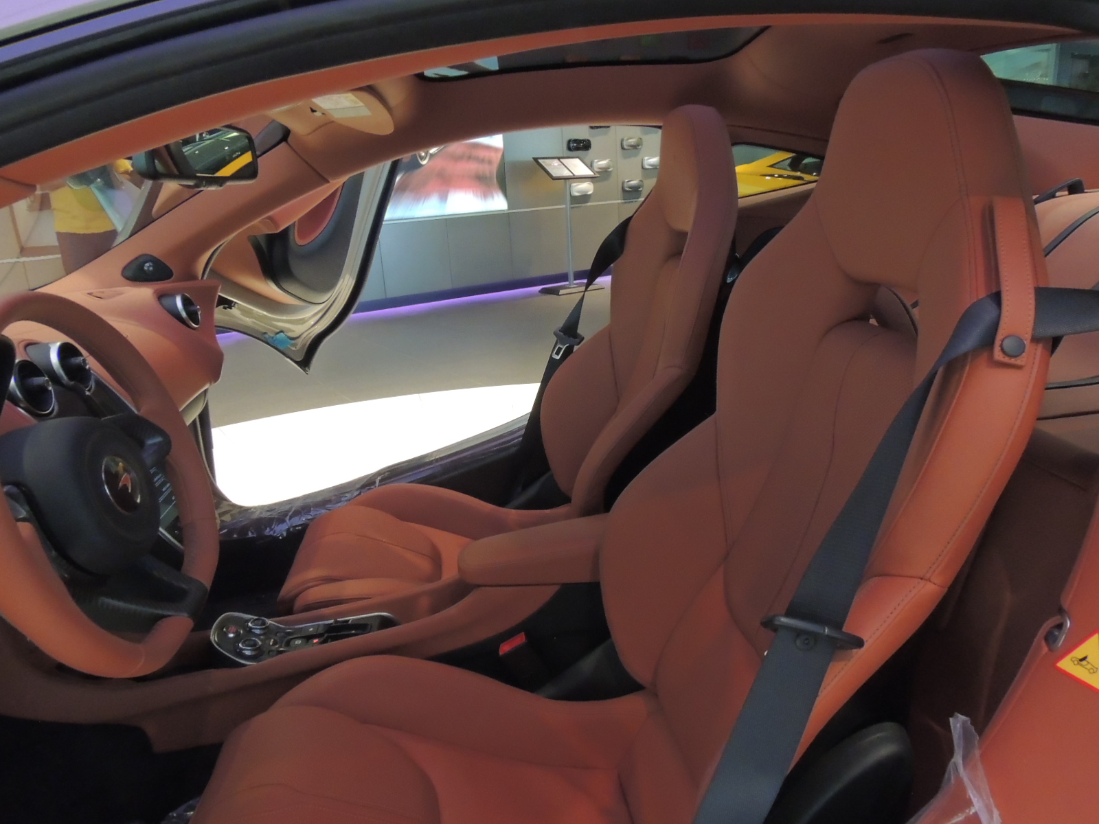 El habitáculo presenta espacio para dos ocupantes, con amplias butacas regulables eléctricamente en ocho posiciones, sumado a la presencia de un techo panorámico de cristal, parecido al del P1, pero con características adecuadas de aislamiento acústico y térmico.