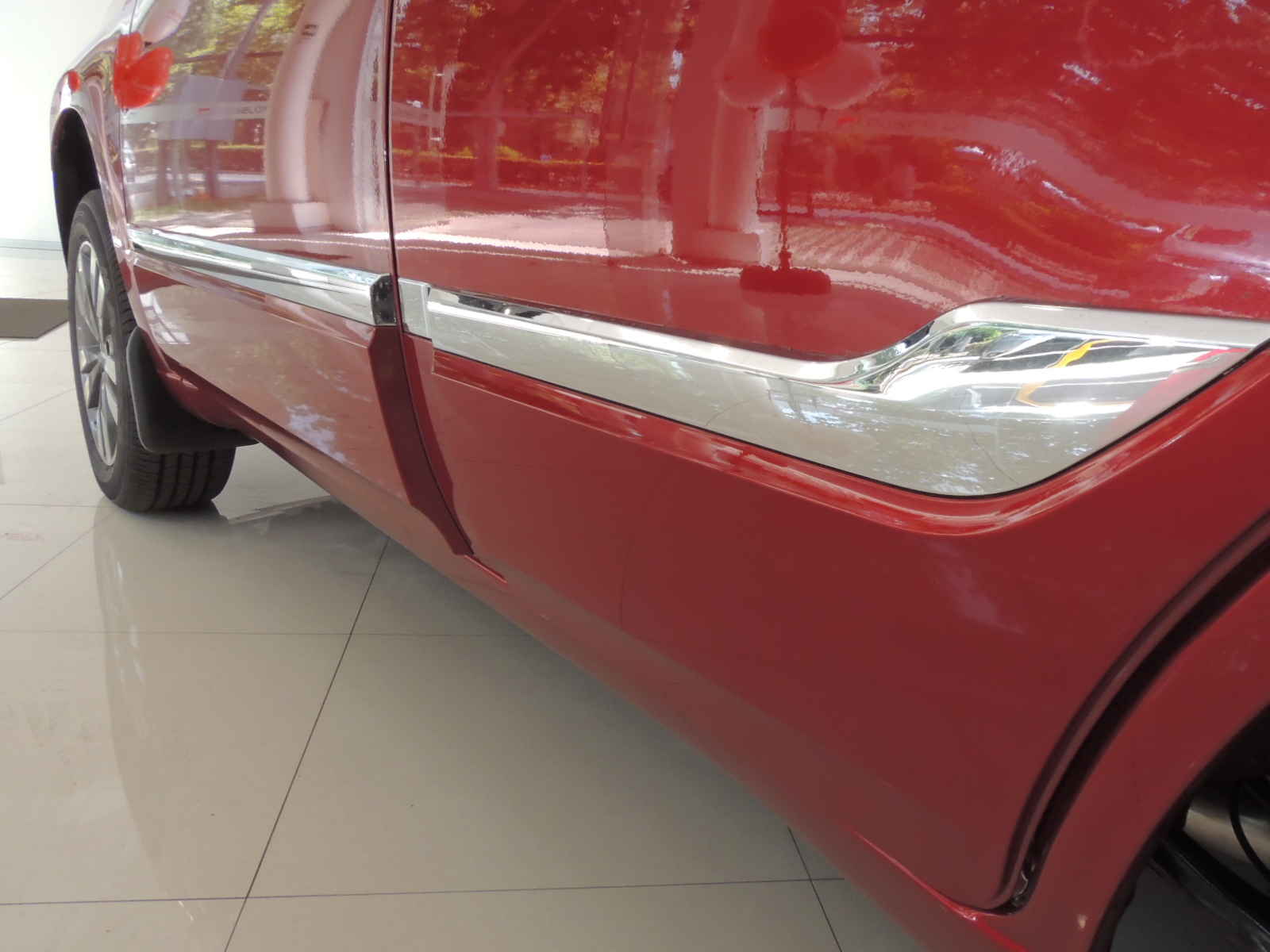 Lateralmente los cambios corren por cuenta de la inclusión de detalles cromados en las manillas de las puertas, manteniendo elementos característicos como lo es la presencia de intermitentes en la carcasa de los espejos, o el listón cromado que recorre la parte baja de las puertas, además de sus llamativas llantas de aleación diamantadas de cinco rayos dobles que calzan neumáticos Maxis MA-656 de medida 215/60 R17, estándar para las dos versiones signadas bajo los acabados GLS y GLX.