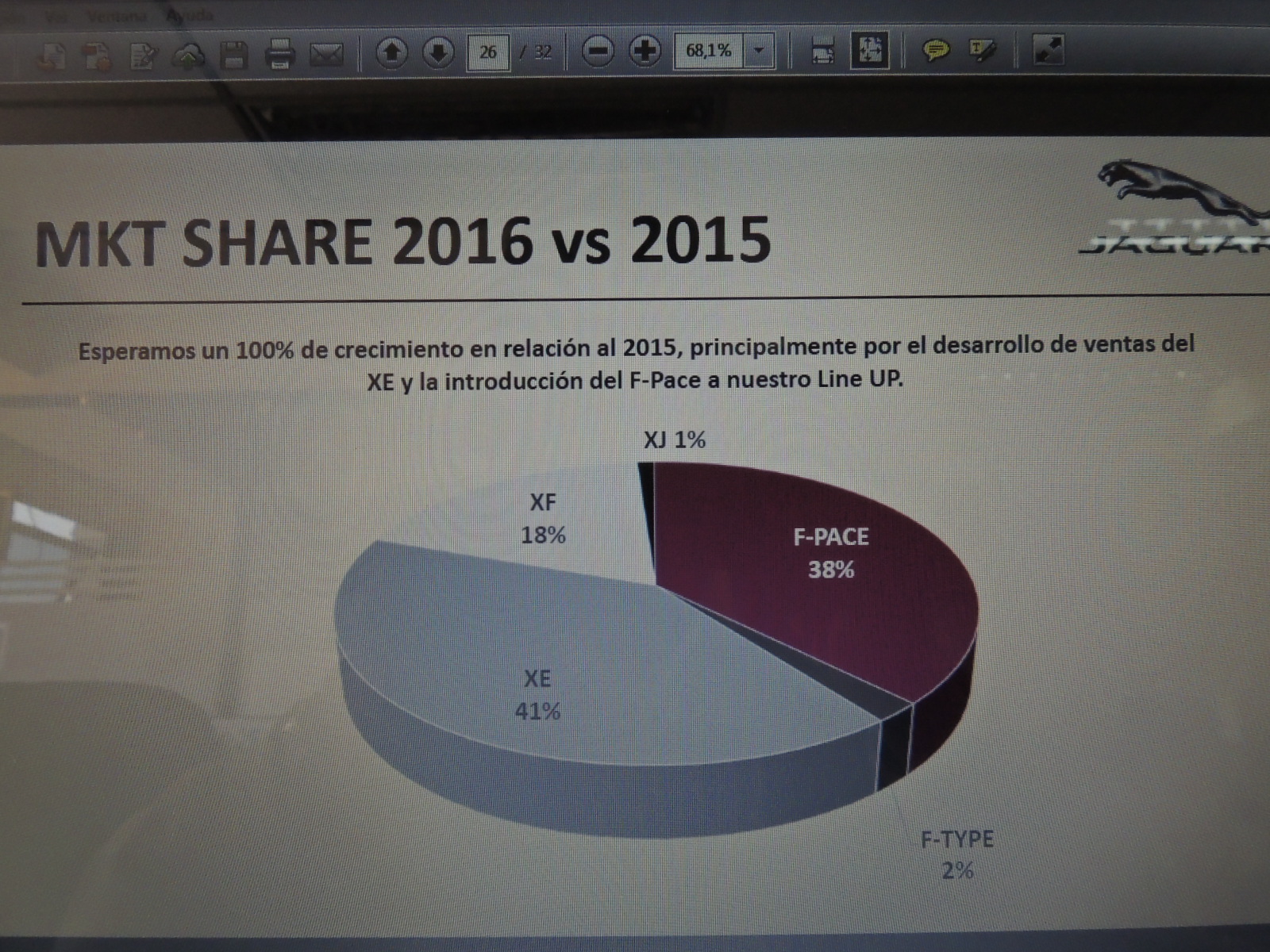 Consultado el alto ejecutivo acerca de la escasa participación del XJ, Espinoza señaló que ese modelo sólo se está trayendo a pedido, por tratarse de un segmento muy pequeño, que no representa más de 60 autos al año (como segmento), debido a la irrupción de tendencias globales como lo son autos de menor tamaño, y al hecho de que la gente se esté pasando más a SUV.