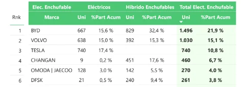 Los vehículos enchufables (BEV + PHEV) totalizaron 6.824 unidades, impulsados principalmente por: