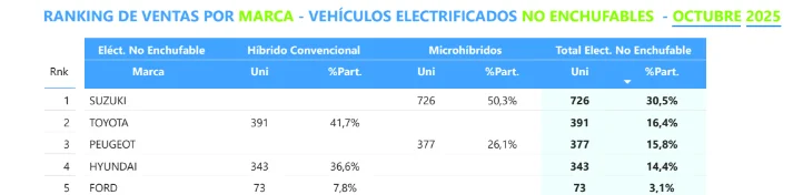 • Toyota mantiene un rol clave con 4.534 híbridos.