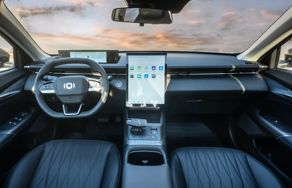 El interior destaca por su enfoque tecnológico y sensaciones premium, con materiales de alta calidad y un completo equipamiento de serie que incluye climatizador con salidas traseras, panel de instrumentos digital de 10,25”, sistema de infoentretenimiento con pantalla vertical táctil de 13,2” compatible con Android Auto y Apple CarPlay, además de comandos por voz y múltiples funciones de conectividad remota.