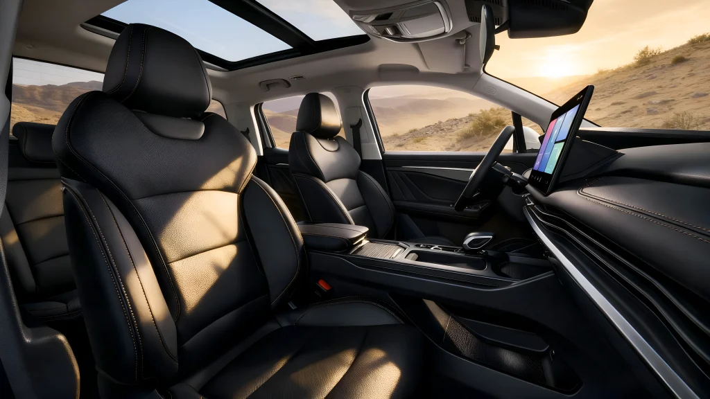 El interior ofrece un nivel de confort más cercano a un SUV de alta gama, con tapiz de cuero, asientos eléctricos, climatización automática bizona y dos pantallas digitales de 10,25” y 14,6”, además de conectividad Wi-Fi, cargador inalámbrico de 50W y compatibilidad con Apple CarPlay o CarbitLink.