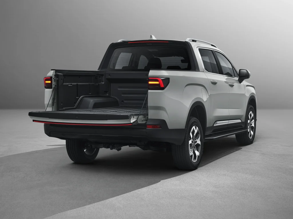 Entre sus atributos destaca también la carga bidireccional, que permite utilizar la camioneta como fuente de energía móvil, ideal para actividades al aire libre o situaciones de emergencia. En cuanto a dimensiones, mantiene las mismas proporciones de la variante eléctrica, con una capacidad de carga de 875 kg, despeje al suelo de 219 mm y neumáticos All Terrain de 18 pulgadas.