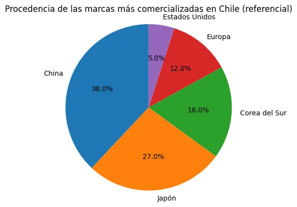 El gráfico de torta evidencia el profundo cambio que ha experimentado la estructura del mercado automotor chileno en los últimos años. Las marcas de origen chino concentran la mayor participación, reflejando su fuerte expansión en volumen, competitividad de precios y rápida adopción de tecnologías electrificadas.