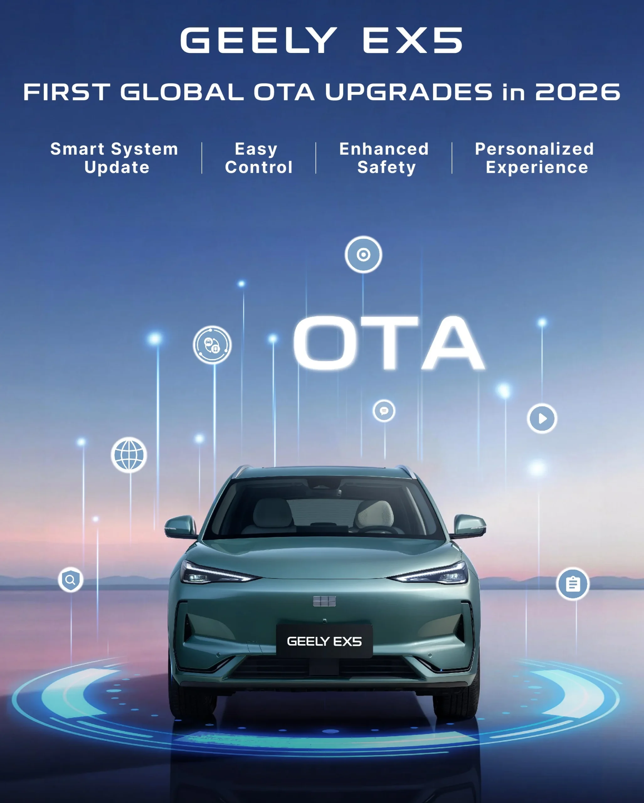 Geely anuncia que el EX5 recibirá durante este año su primera actualización global over-the-air (OTA), un hito que consolida la visión tecnológica de la marca y su enfoque centrado en el usuario. Esta actualización está diseñada para optimizar la experiencia diaria a bordo, con mejoras en conectividad inteligente, facilidad de uso, respuesta del sistema y seguridad.