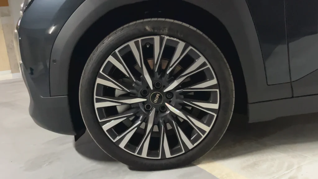El frontal destaca por una parrilla cerrada, propia de los vehículos eléctricos, junto a faros LED con firma lumínica personalizable, mientras que los pasos de rueda marcados y las proporciones robustas refuerzan su carácter de crossover urbano.