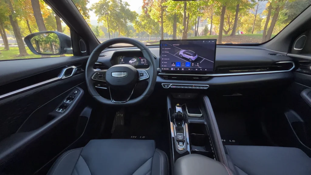 El habitáculo del New Coolray Sport da un salto importante en tecnología y equipamiento. Destaca su pantalla central de hasta 14,6 pulgadas, acompañada de un panel de instrumentos digital de 8,8 pulgadas, que mejoran la interacción con el vehículo.